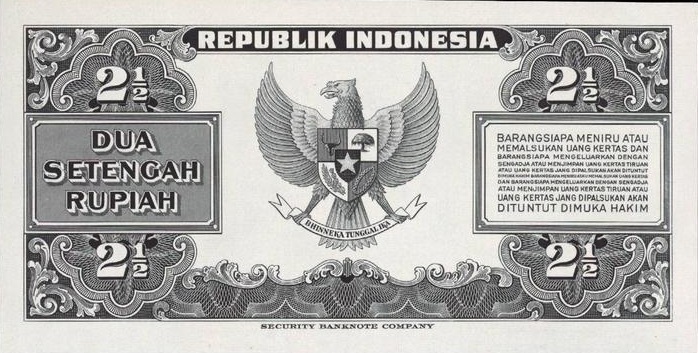 (2) Republik of Indonesia Dua Setengah 2 1/2 Rupiah Notes
