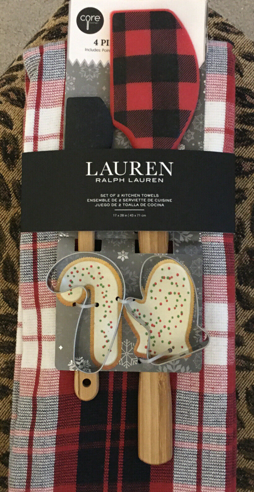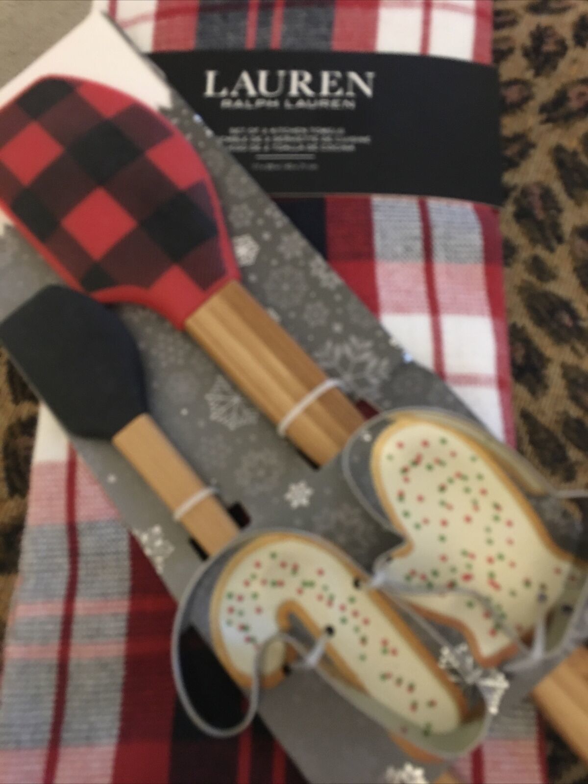 RALPH LAUREN 2pc TARTAN PLAID BLACK RED WHITE-2 SPATULAS-2 GLOVE CANY CANE COOK