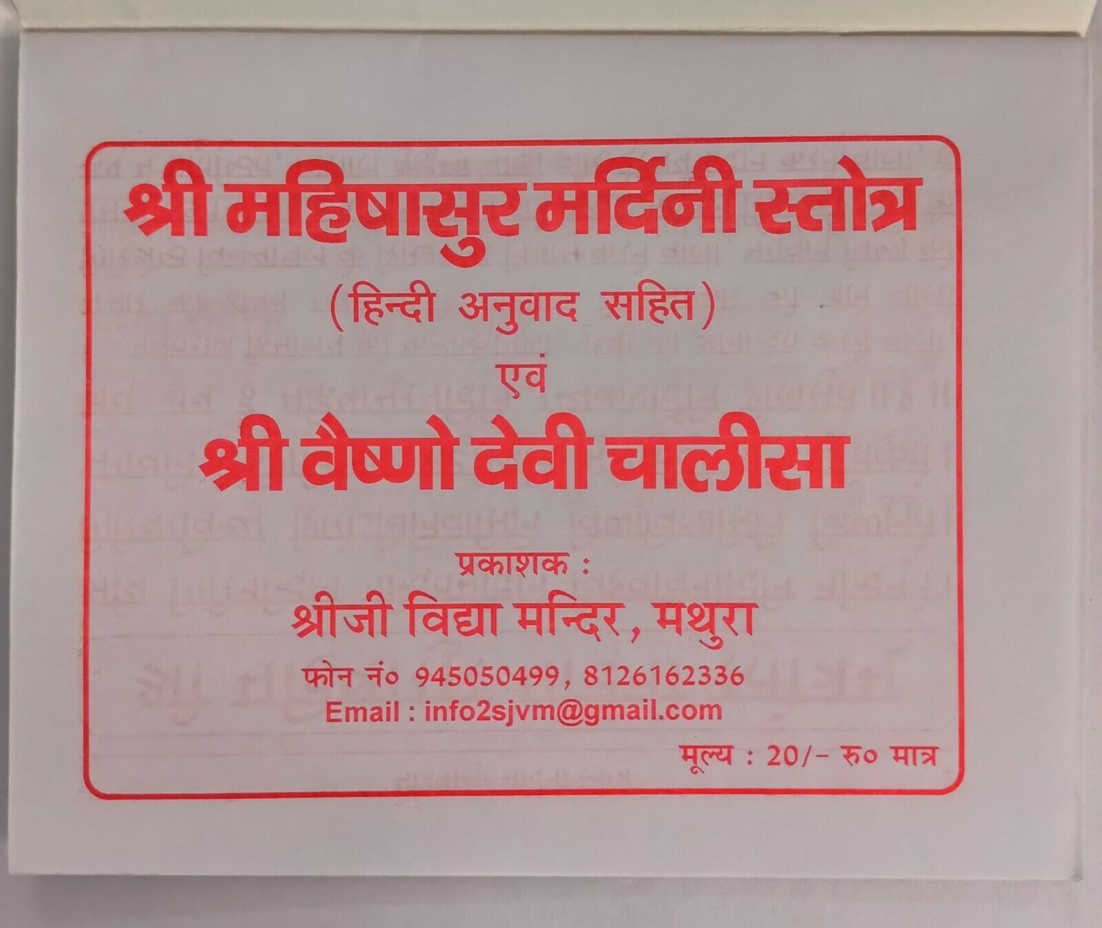 Religious Shri Mahishasur Mardini Stotra, Vaishno Devi Chalisa Hindu Book F/S