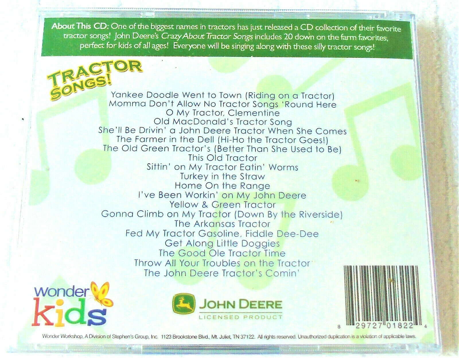 John Deere wonder kids tractor songs CD. 20 down on the farm farm favorites, perfect for kids all ages. New