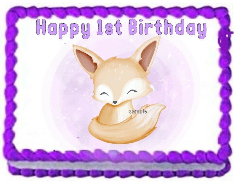 Cute Baby Fox Shower Birthday Party Image Edible Cake Topper Frosting Sheet