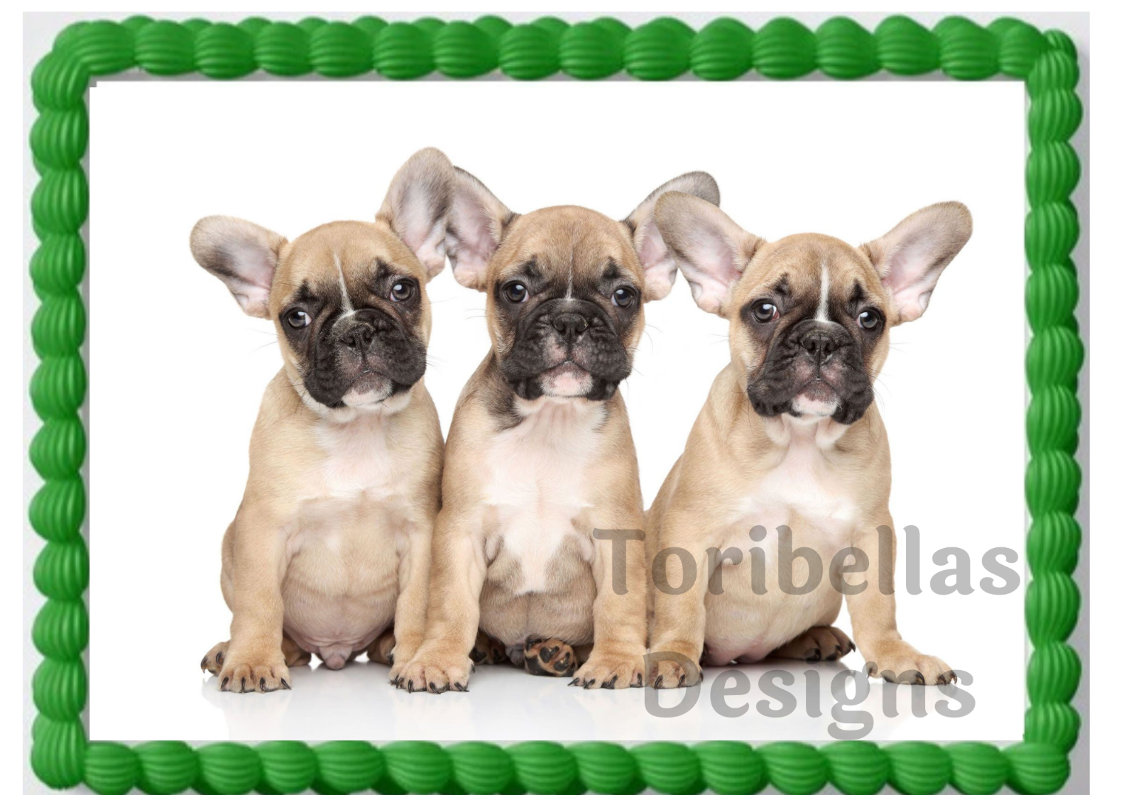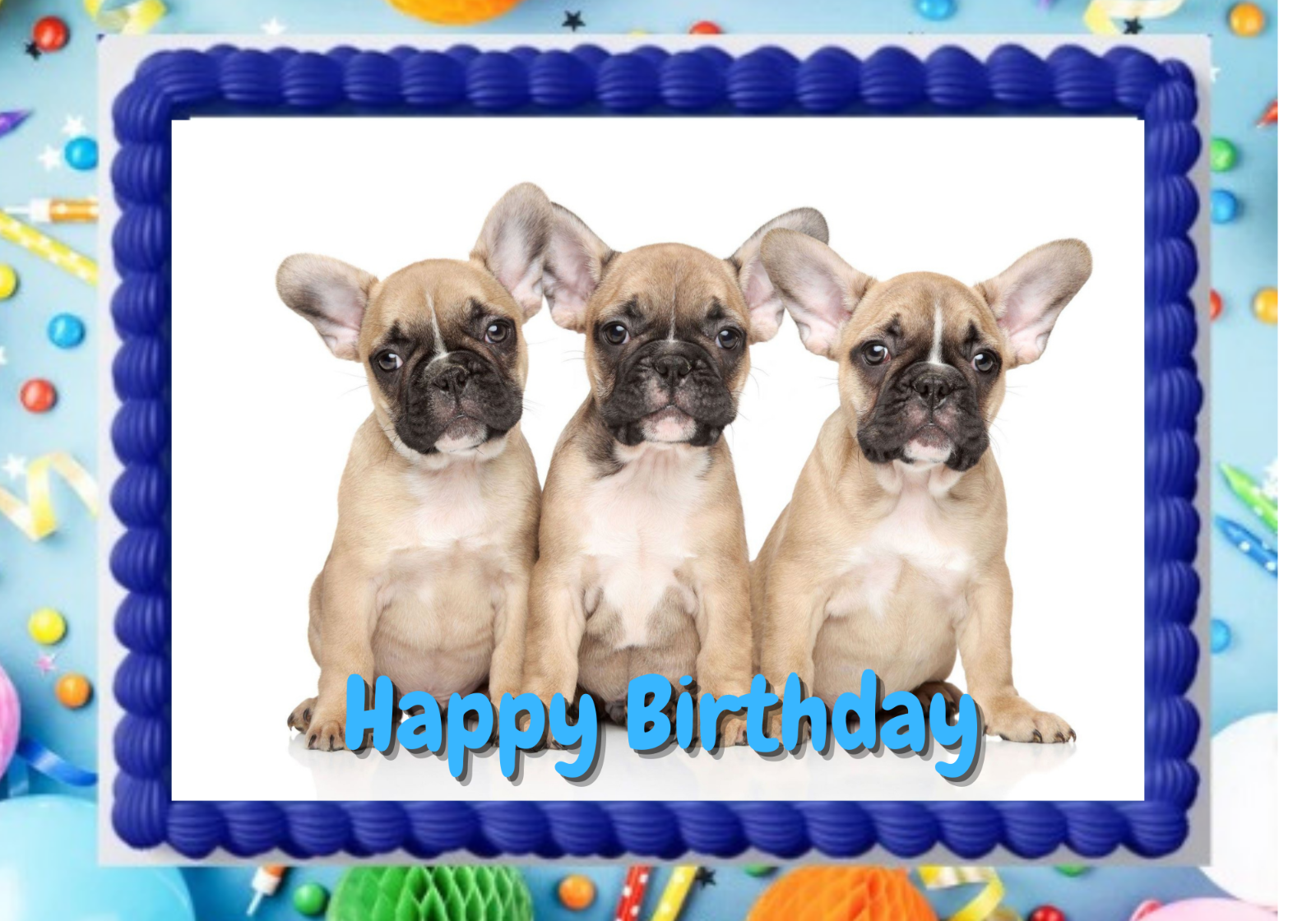 French Bulldog Puppy Frenchie Birthday Image Edible Cake topper Frosting Sheet