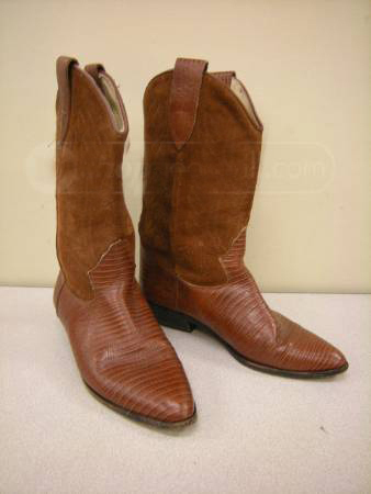 Brand Description-Brass Plum Shoes Womens Vintage rust/brown cowboy boots. Suede shaft with a faux suede vamp. Very good overall condition!