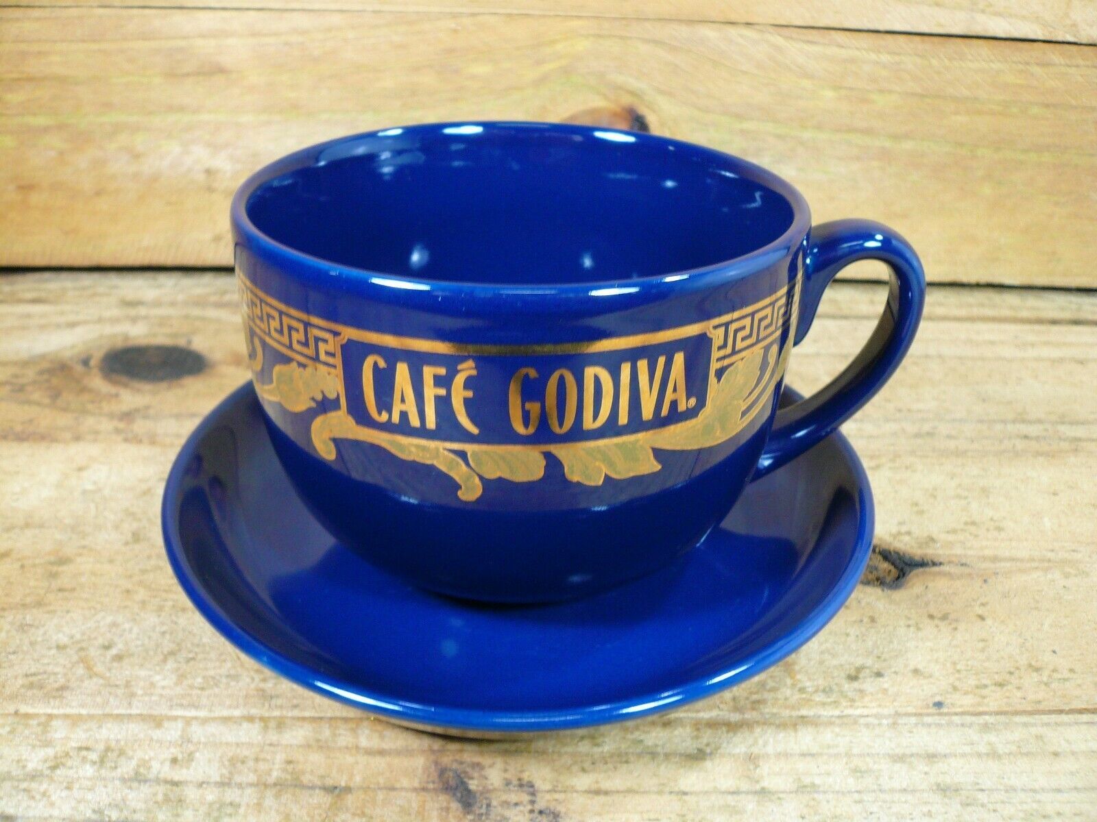 Extra Large Cafe Godiva Coffee 16 oz. Mug Saucer - Cobalt Blue Gold Gilt