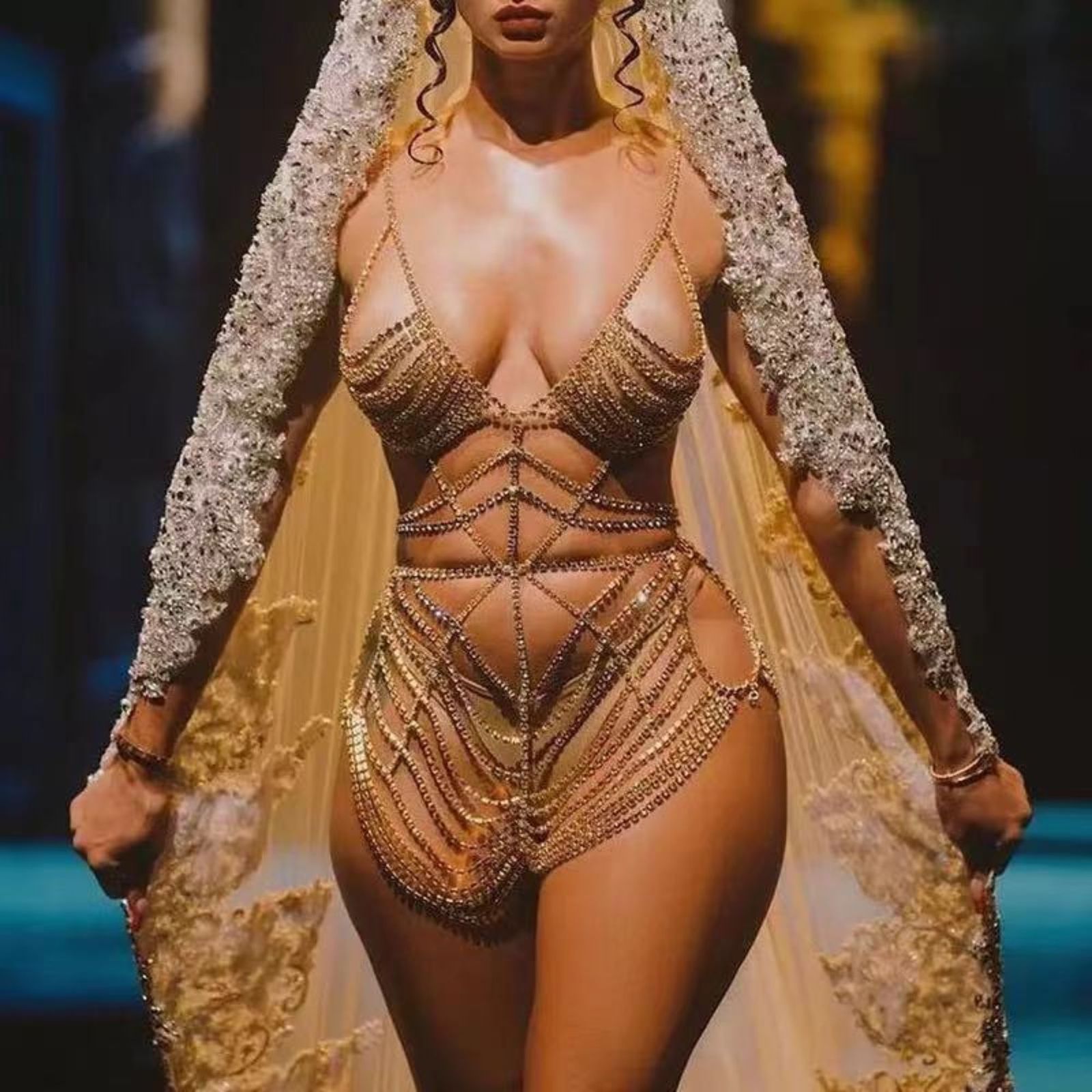 Women's Layered Rhinestone Dress Body Chain waist chain set chest chain full set