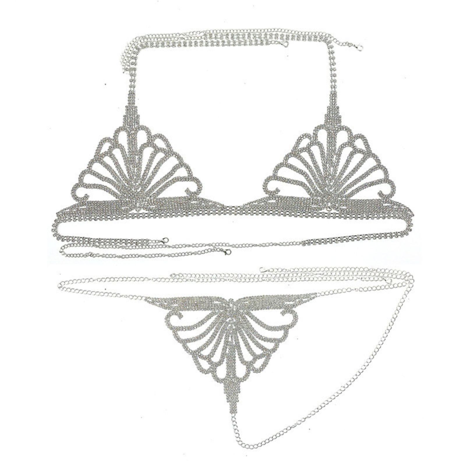 Rhinestone Claw Chain Body Chain Set Sexy Bra Panty Set Lingerie Show Body Jewel