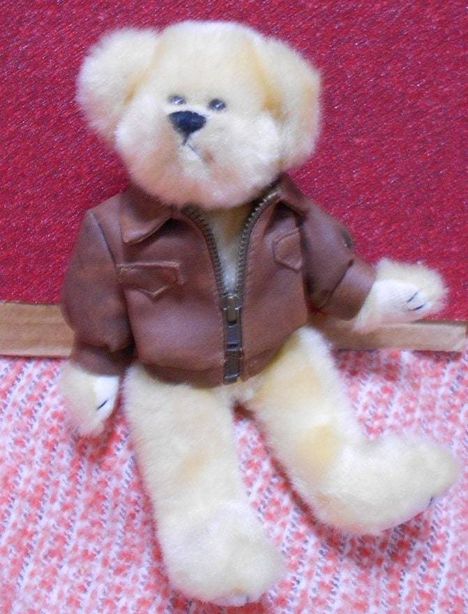 TY Beanie Baby - Baron the Bear, 8" Leather Bomber Jacket, w/ERRORS, Old Vintage