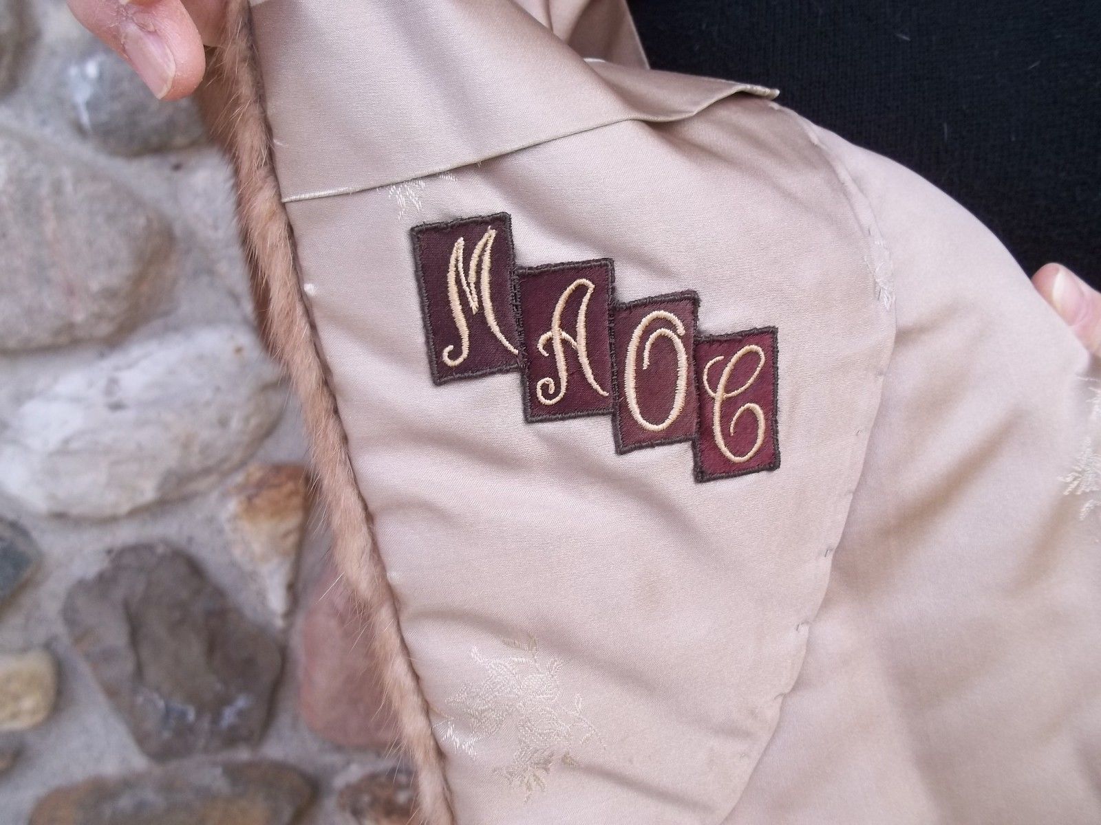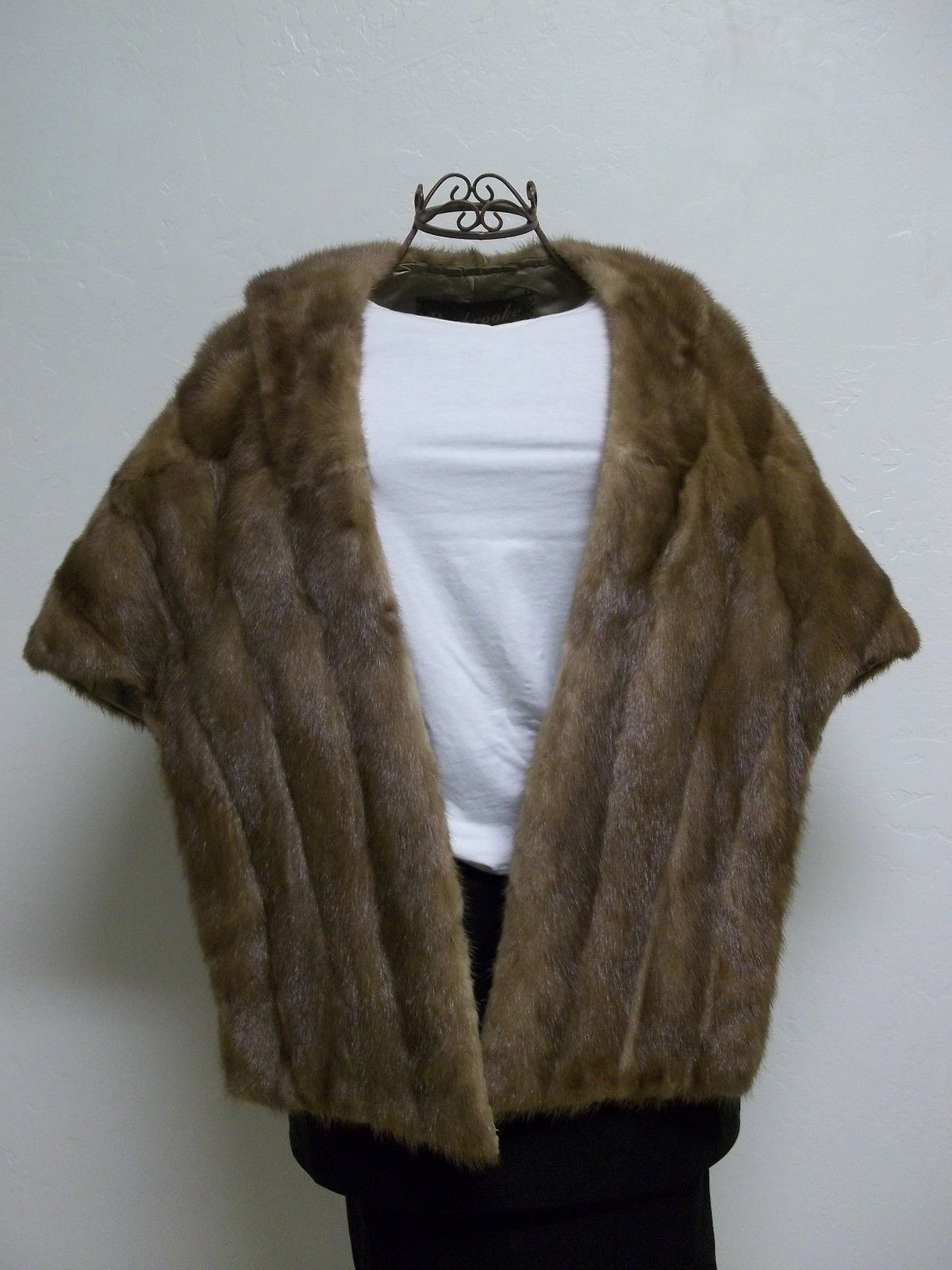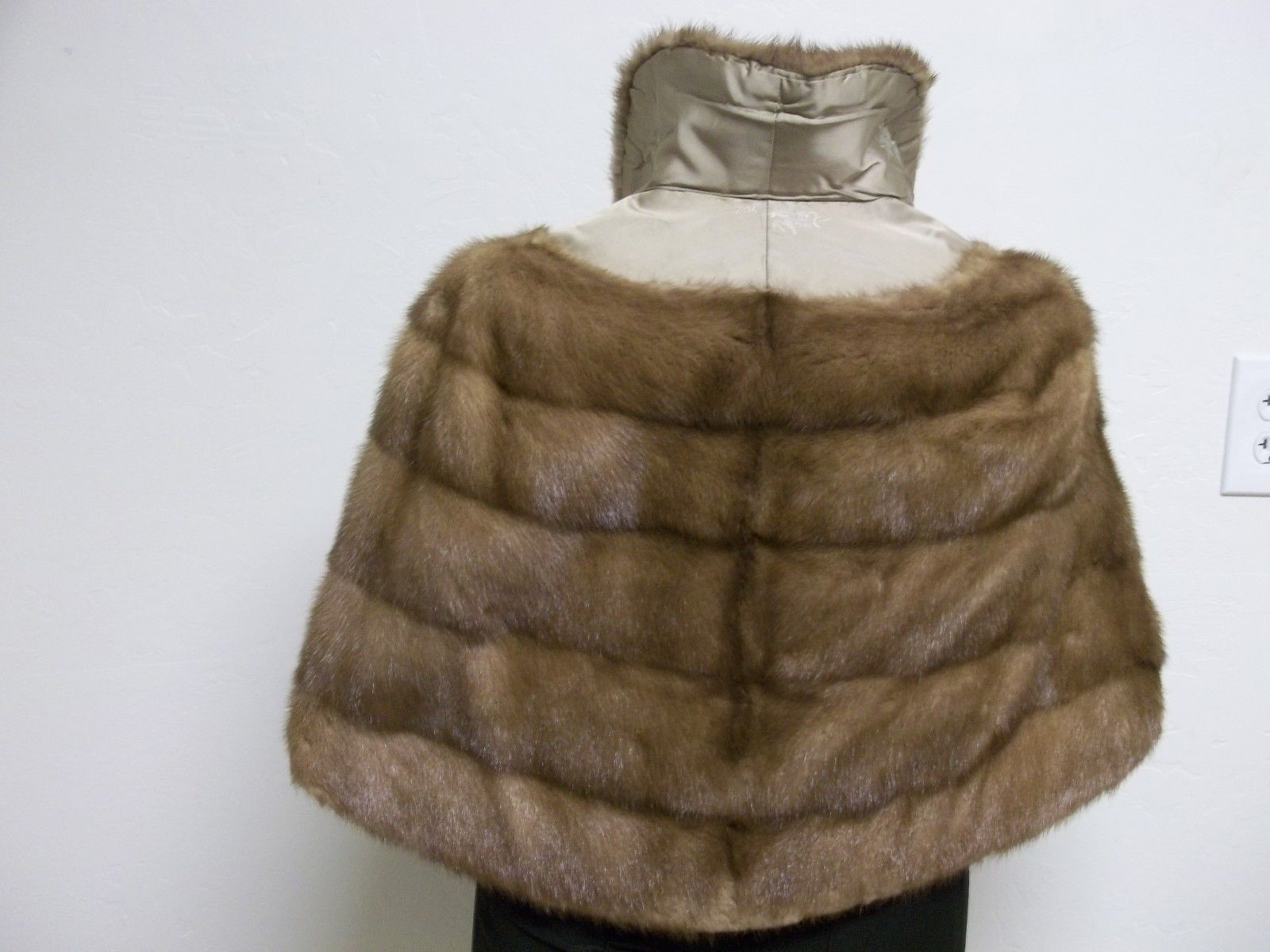 This luxurious vintage women's mink tan stole/wrap has 2 inside shoulder straps, 2 inside pockets, monogrammed initials MAOC inside right. Very plush, this is the new absolute must have "Bride To Be" accessory, silky taupe colored lining is in pristine condition, any stains, odors or imperfections would be mentioned in the listing.