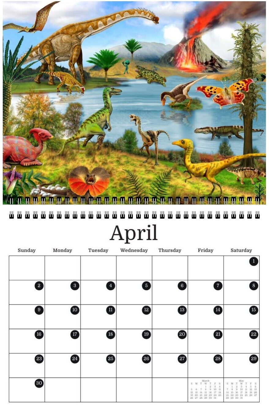 This Calendar "Dinosaur Life" wall calendar is specially designed for boys and adults. Each month has its own unique interesting image that cheers you up and makes you laugh. These images form a collection of paintings by Radiy Bohem. They are amazing and beautiful.