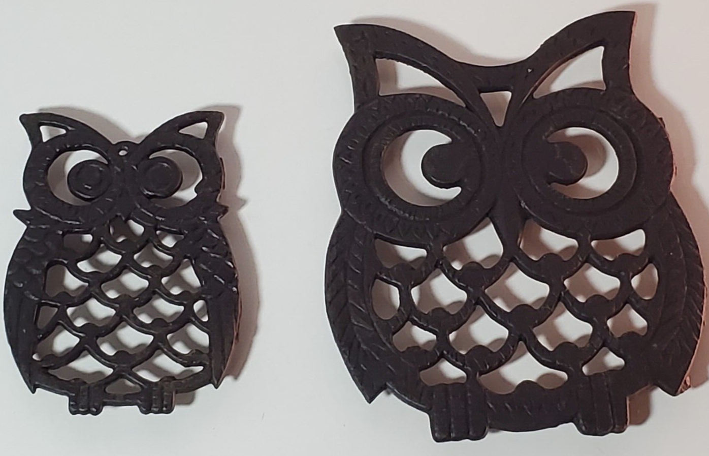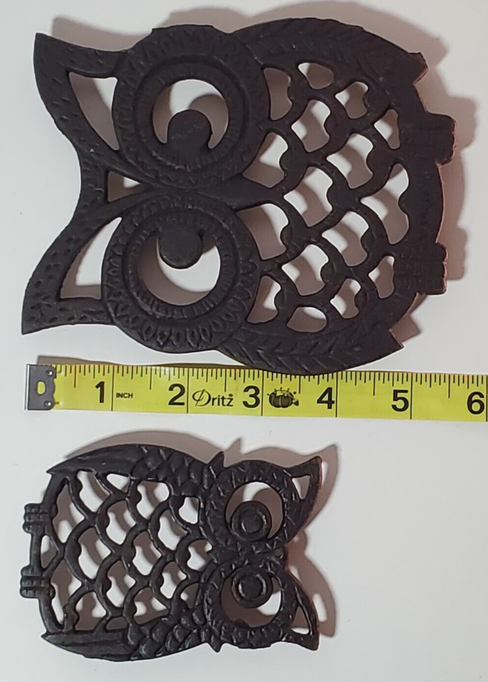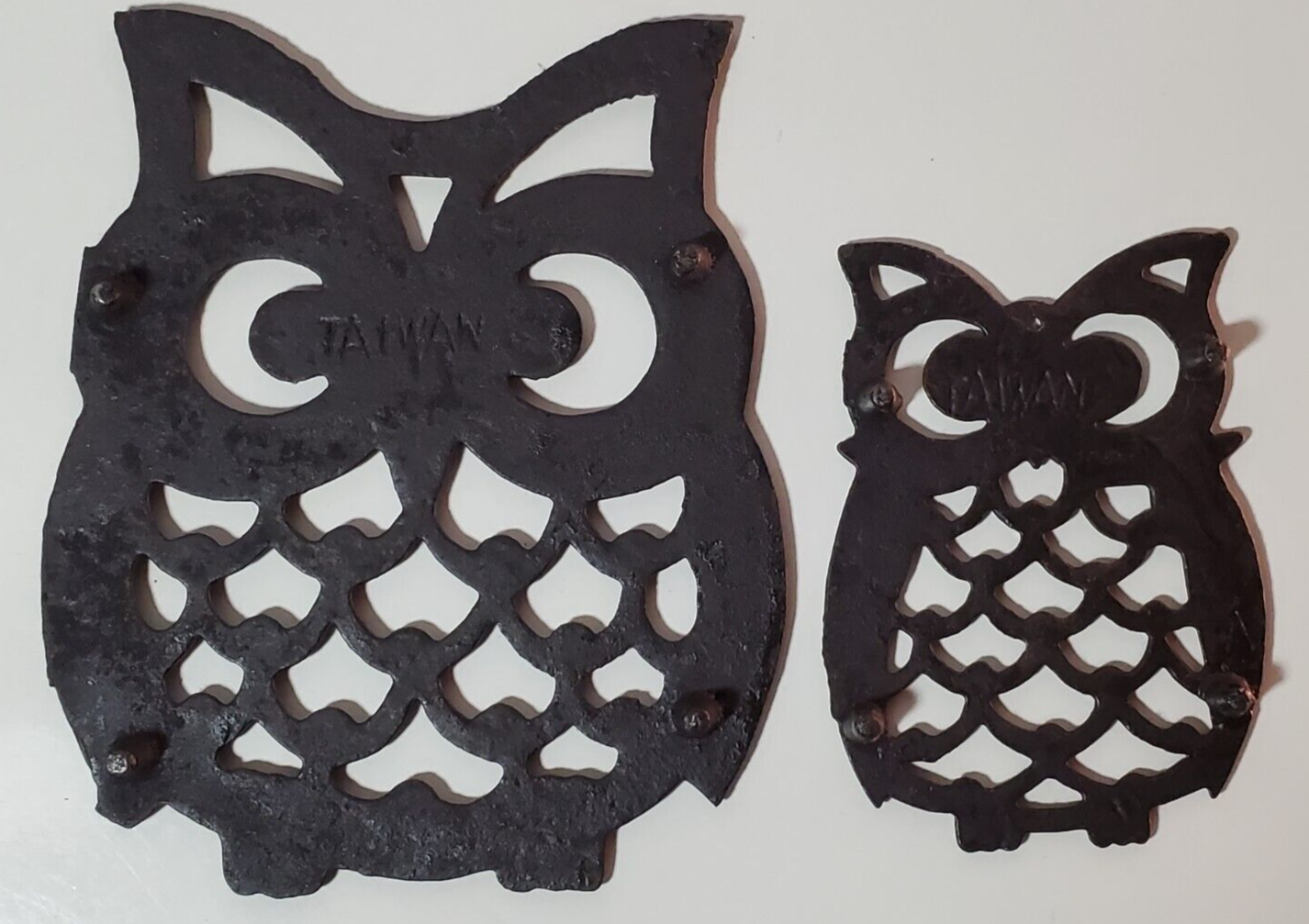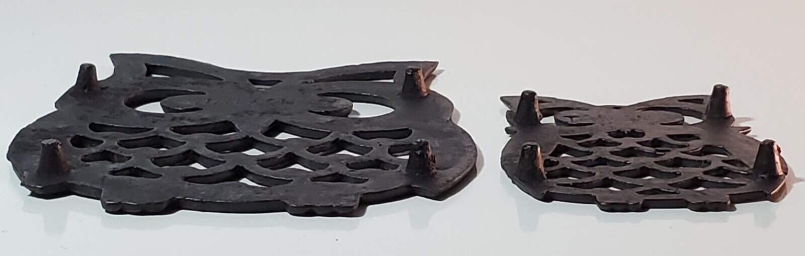 Cast Iron Owl Trivet Set of 2 Taiwan Footed Hot Plate Vintage Kitchen Decor