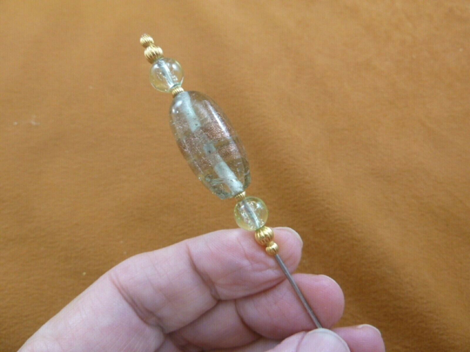 U-283-98) clear with copper swirl glass silver tone beaded hatpin Pin hat pins