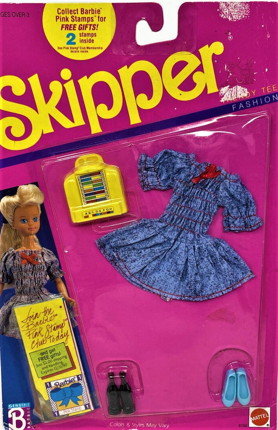 SKIPPER Trendy Teen Fashions Denim Smocked Dress Coke Bottle Blue Flats Mattel