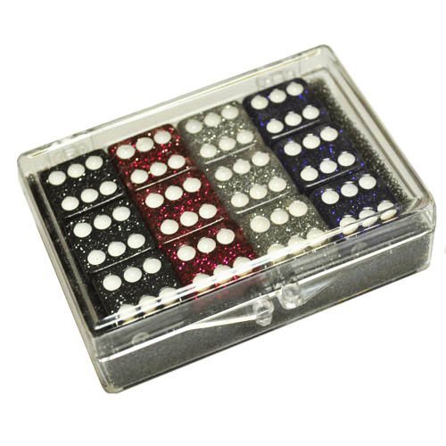 Marion Set of 12 Glitter Dice - Red - Silver - Blue - Black in Acrylic Box