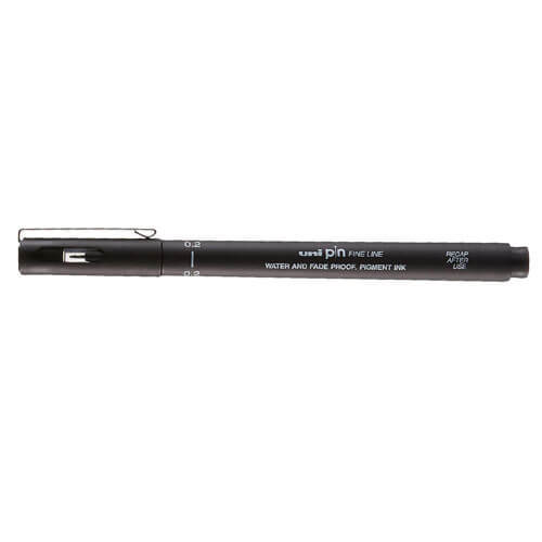 Uni Pin Fine Line Drawing Pen 12pcs (Black) - 0.2mm