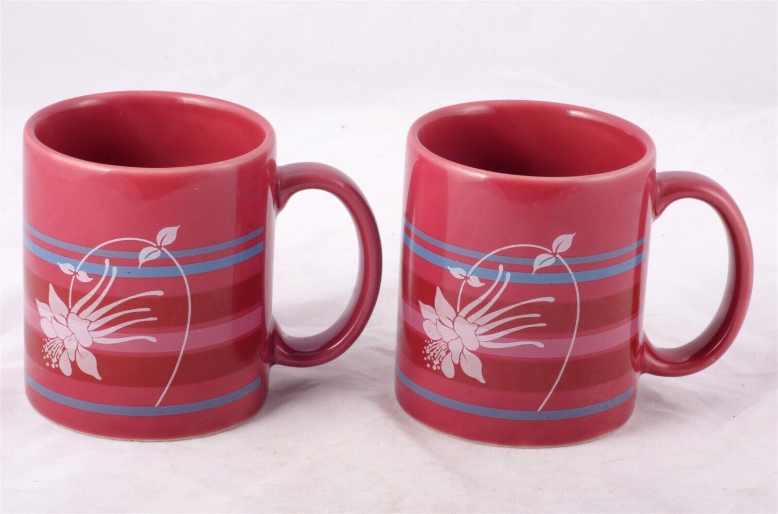 Coffee Cup set two matching maroon mugs with orchids flower design
