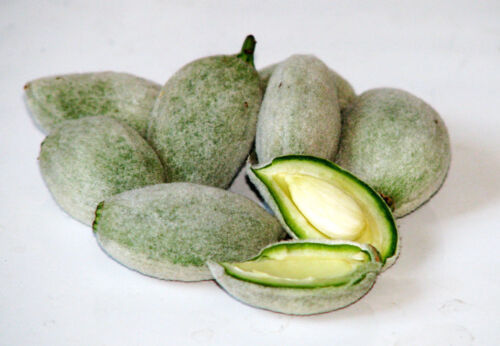 Wild almonds are bitter, the kernel produces deadly cyanide upon mechanical handling[clarification needed], and eating even a few dozen in one sitting can be fatal. Selection of the sweet type, from the many bitter types in wild, marked the beginning of almond domestication. How humans selected the sweet type remains a mystery. It is unclear as to which wild ancestor of the almond created the domesticated species. Ladizinsky suggests the taxon Amygdalus fenzliana (Fritsch) Lipsky is the most likely wild ancestor of the almond in part because it is native of Armenia and western Azerbaijan where it was apparently domesticated.While wild almond species are toxic, domesticated almonds are not; Jared Diamond argues that a common genetic mutation causes an absence of amygdalin, and this mutant was grown by early farmers, ?at first unintentionally in the garbage heaps, and later intentionally in their orchards?.[12] Zohary and Hopf believe that almonds were one of the earliest domesticated fruit trees due to ?the ability of the grower to raise attractive almonds from seed. Thus, in spite of the fact that this plant does not lend itself to propagation from suckers or from cuttings, it could have been domesticated even before the introduction of grafting?. Domesticated almonds appear in the Early Bronze Age (3000?2000 BC) such as the archaeological sites of Numeria (Jordan), or possibly a little earlier. Another well-known archaeological example of the almond is the fruit found in Tutankhamun?s tomb in Egypt (c. 1325 BC), probably imported from the Levant. Of the European countries that the Royal Botanic Garden Edinburgh reported as cultivating almonds, Germany is the northernmost, though the domesticated form can be found as far north as Iceland. Etymology and names[edit]The word ?almond? comes from Old French almande or alemande, Late Latin *amandula, derived through a form amygdala from the Greek ???????? (amygdal?) (cf.amygdala), an almond. The al- in English, for the a- used in other languages may be due a confusion with the Arabic article al, the word having first dropped the a-as in the Italian form mandorla; the British pronunciation ah-mond and the modern Catalan ametlla and modern French amande show a form of the word closer to the original. Other related names of almond include Mandel or Knackmandel (German), mandorlo (Italian for the tree), mandorla (Italian for the fruit), amendoa(Portuguese), and almendra (Spanish). The adjective ?amygdaloid? (literally ?like an almond?) is used to describe objects which are roughly almond-shaped, particularly a shape which is part way between atriangle and an ellipse. See, for example, the brain structure amygdala, which uses a direct borrowing of the Greek term amygdal?.