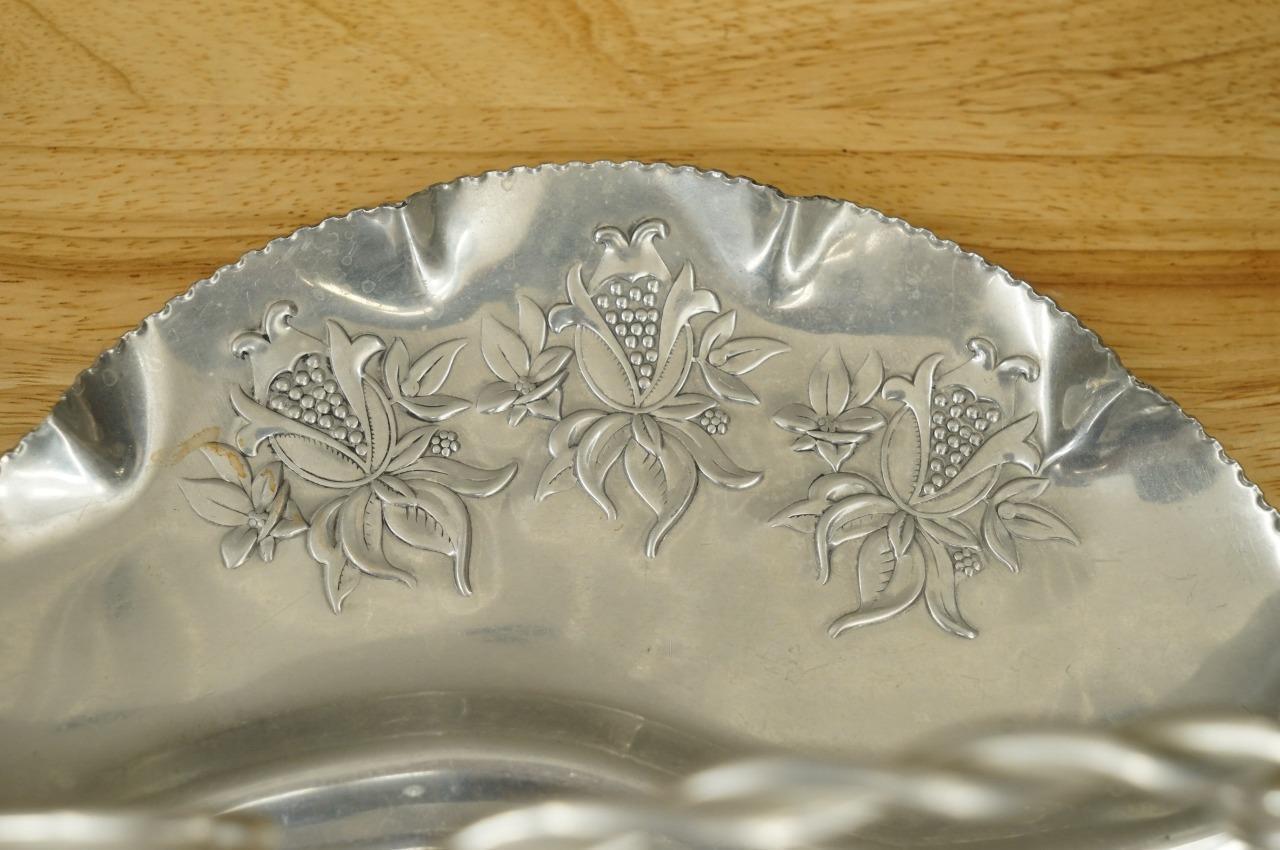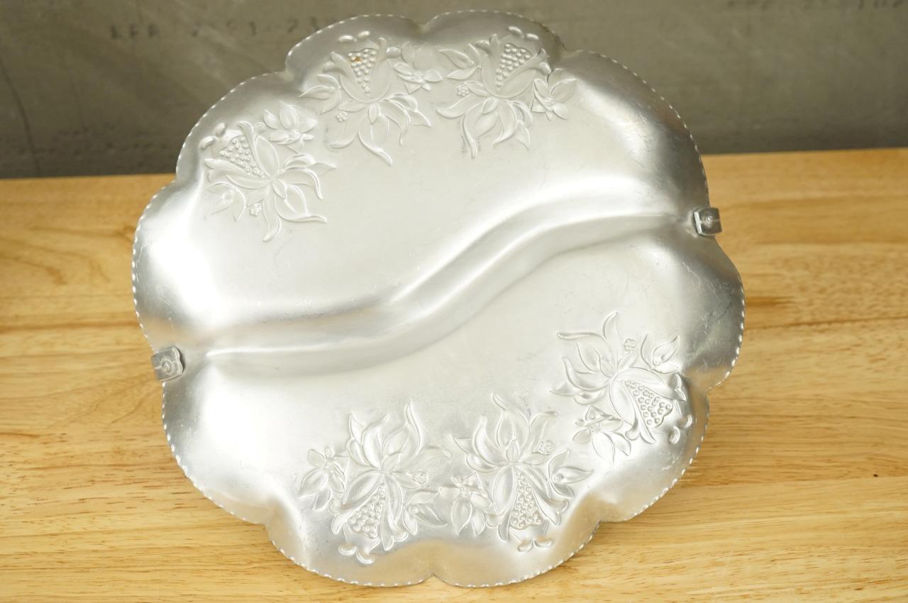 Vintage MCM Mid Century Modern Aluminum Metalware Floral Divided Relish Basket
