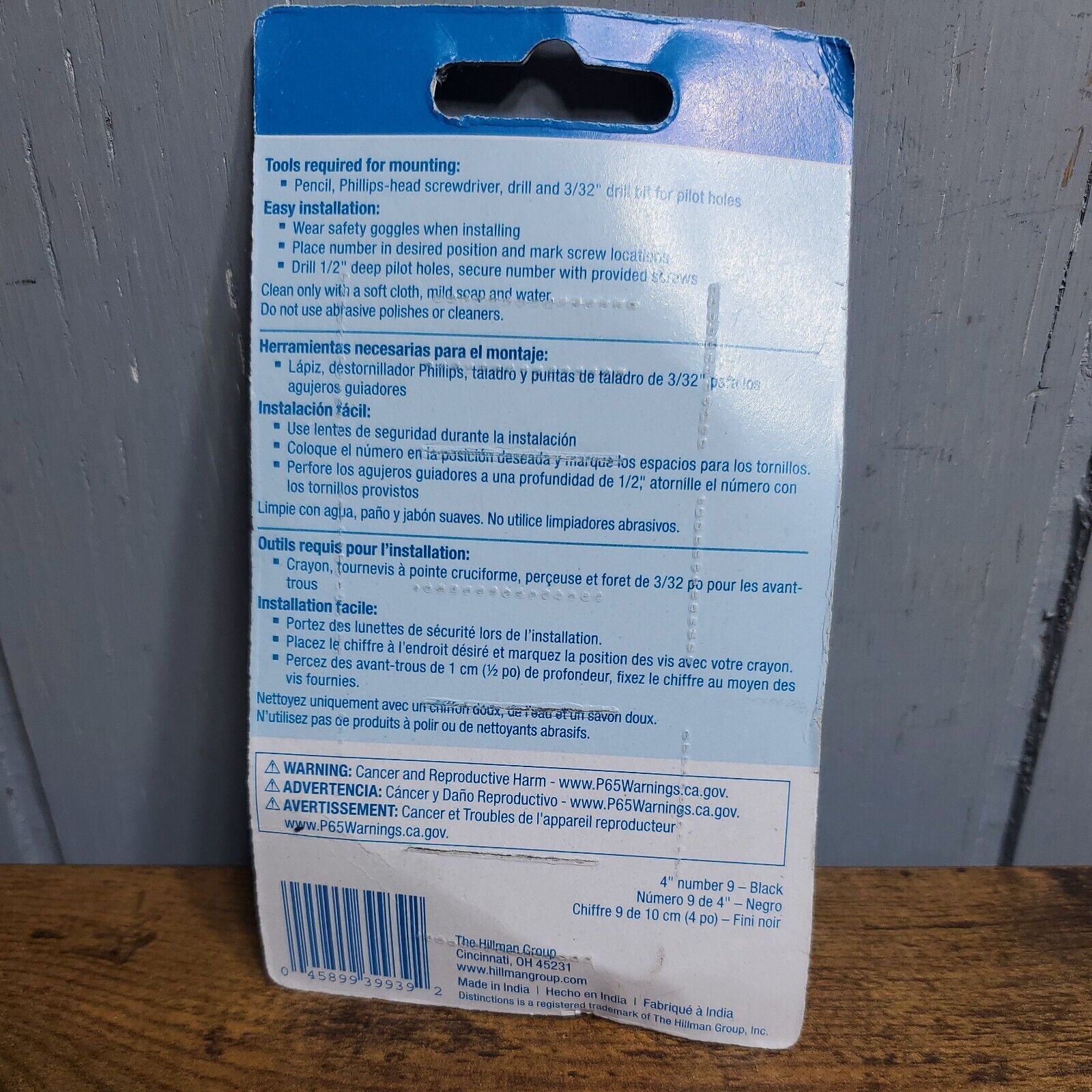 Distinctions 843149 Black Flush-Mount 4-Inch House Number 9.