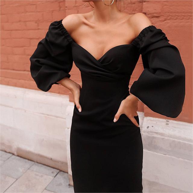 V-neck satin long sleeve knee length lantern sleeve Mother of the Bride