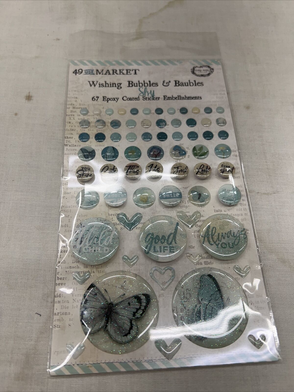 49 & Market NIP Sky Wishing Bubbles And Baubles 67 PCs Epoxy Embellishments