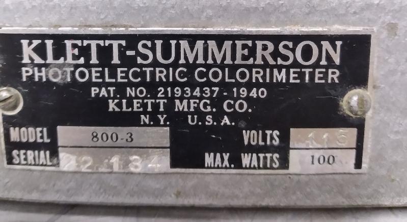 Klett-Summerson MODEL 800-3 Photoelectric and 50 similar items