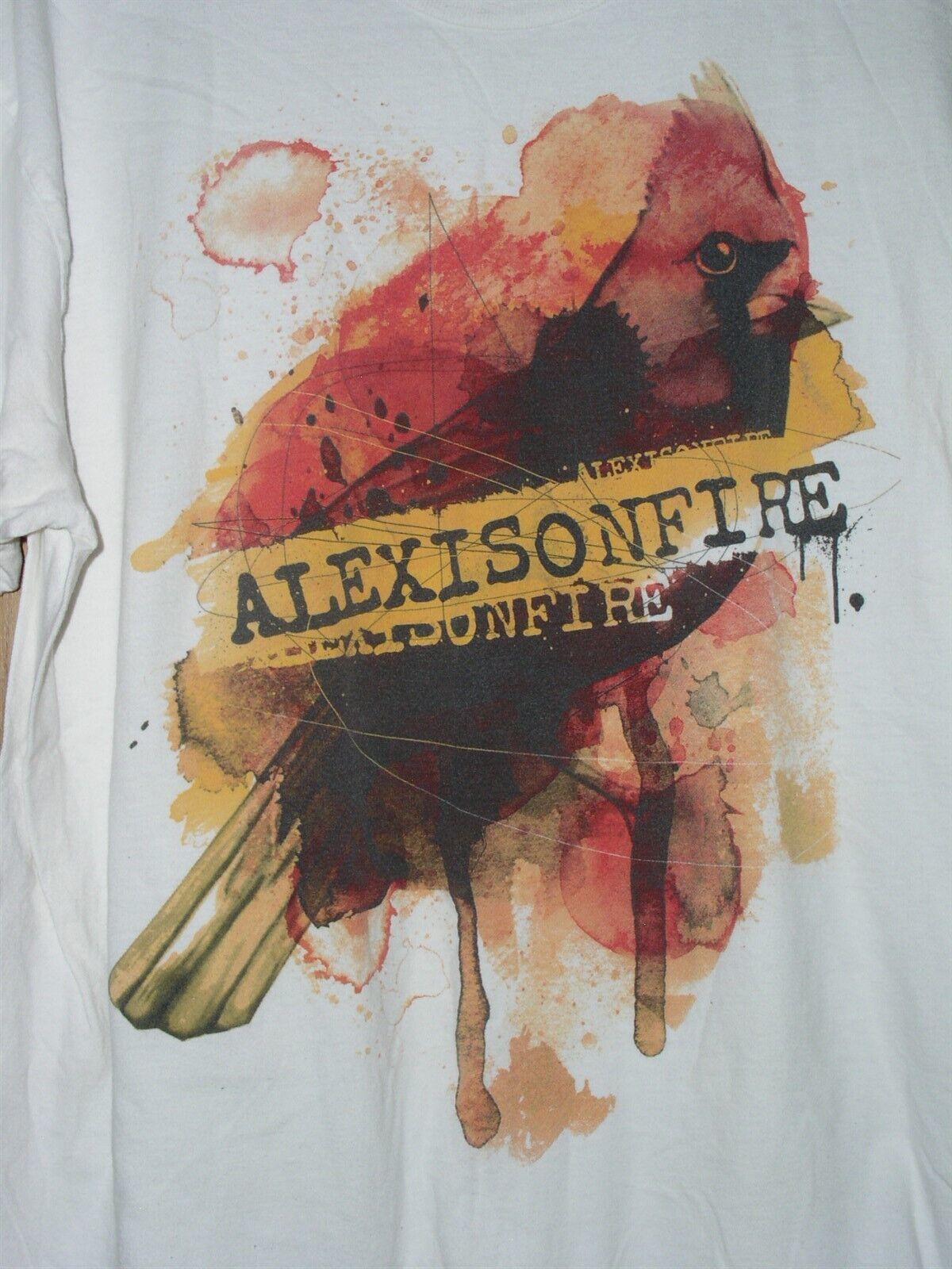 This is a very scarce, vintage t shirt entitled, "Alexisonfire". Assumed to be a concert tour shirt, but uncertain. There is no back printing. Front pic indicates its vintage 2009, related to their album Old Crows/Young Cardinals. I've had this shirt in my possession for about 12 years. A terrific item for the fan or collector.