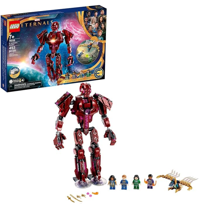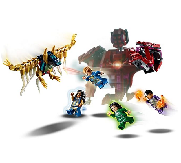 Kids join forces with 4 Eternals to defeat a Deviant bat. The Eternals have cool powers: Ajak is the only one able to communicate with the powerful extra-terrestrial beings, the Celestials; Sersi transforms matter into whatever she desires; Ikaris has superhuman strength; and Kingo can blast terrestrial energy. The set also includes a posable Celestial figure that can hold an Eternal minifigure in its hand. And, if you’re buying for a minifigure fan, this awesome LEGO playset is the only one to feature the Ajak and Kingo minifigures!
