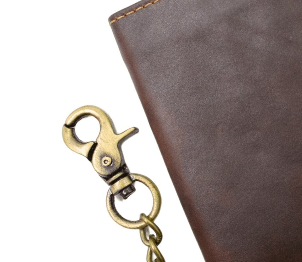 HIGHLIGHTING FEATURE : It has 2 Currency/Receipts compartments, 9 card slots, 1 transparent window for license or ID card, Antique Chain 12 inch approx.
