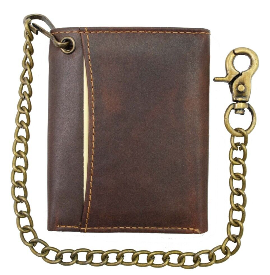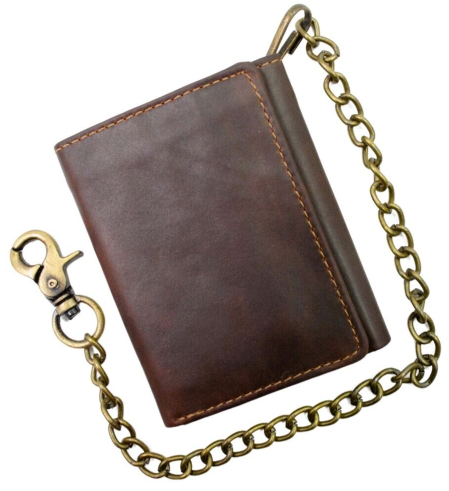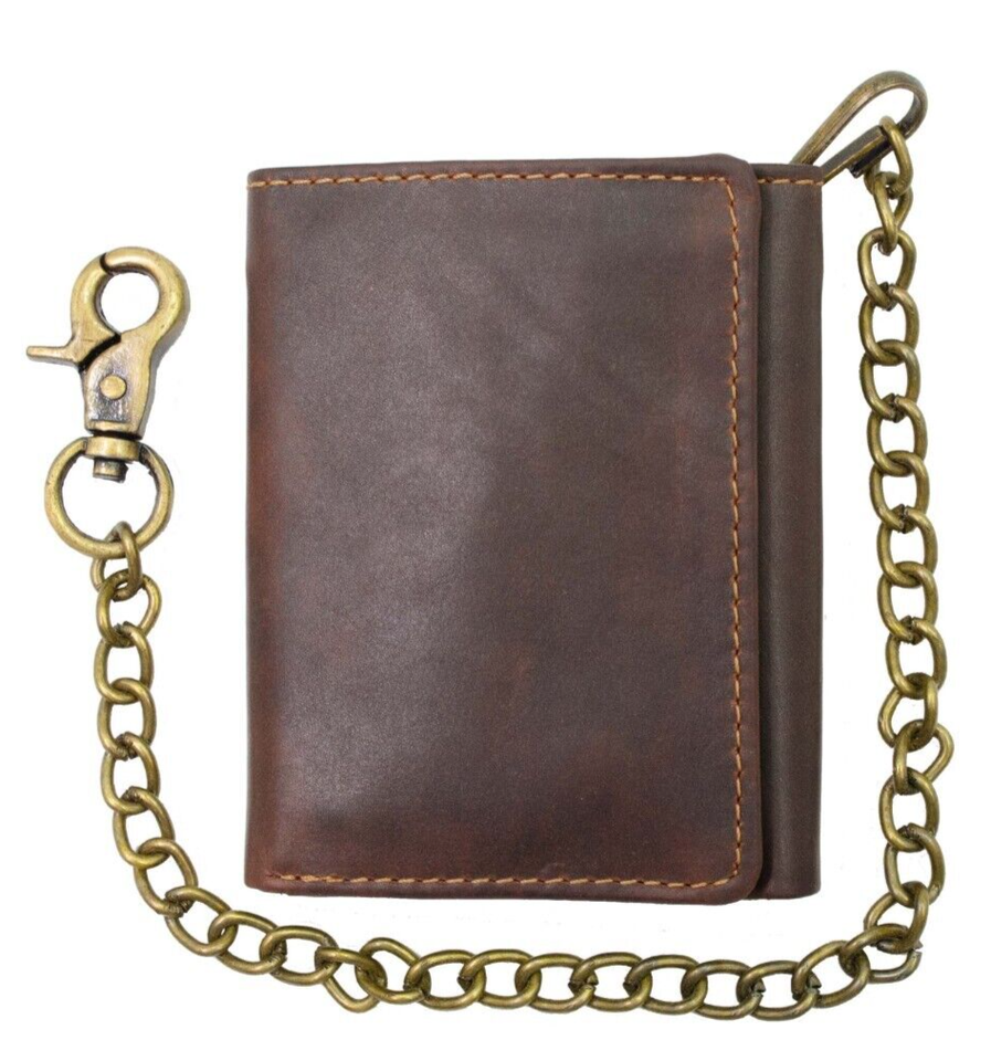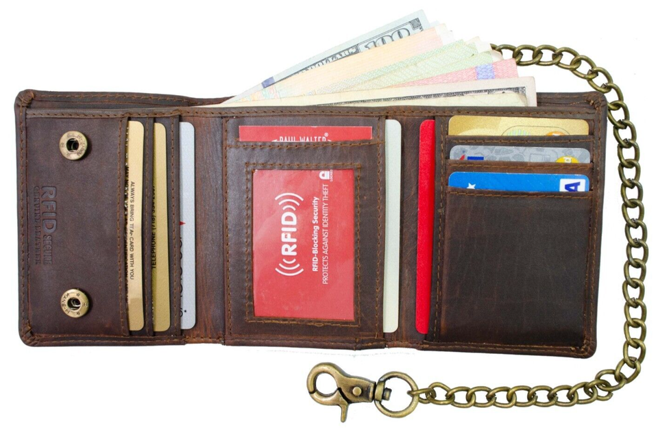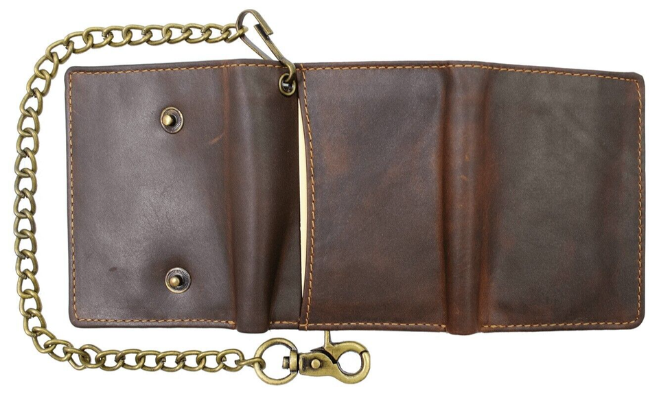 Men's Trifold Hunter Leather Biker, Truck Chain Wallet with RFID Blocking