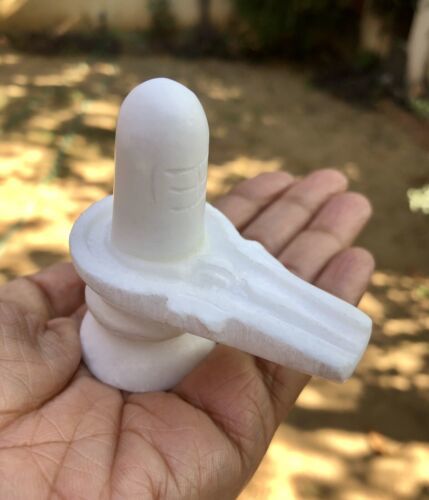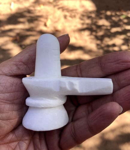 3 Inch Marble Stone Shivling Handmade Hindu God White Shiva Lingam Pooja
