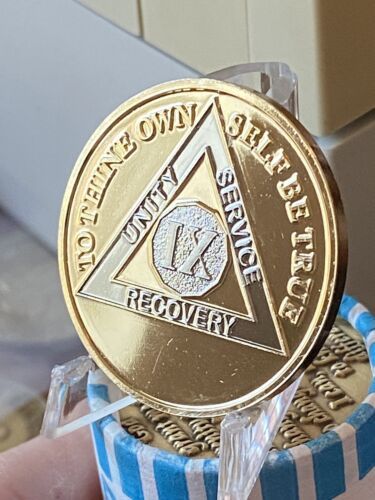 9 Year AA Medallion Premium Gold Plated Sobriety Chip Serenity Prayer