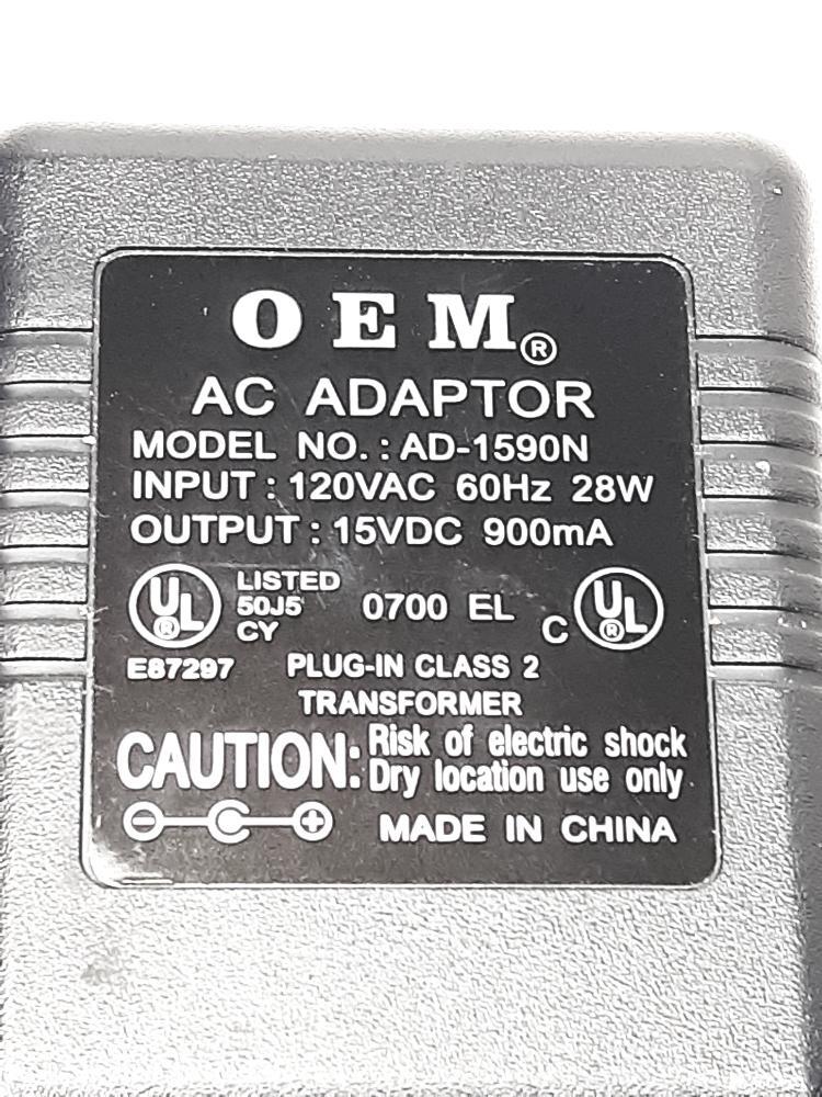 Unknown AD-1590N AC to DC Adapter Input 120VAC 28W Output 15VDC