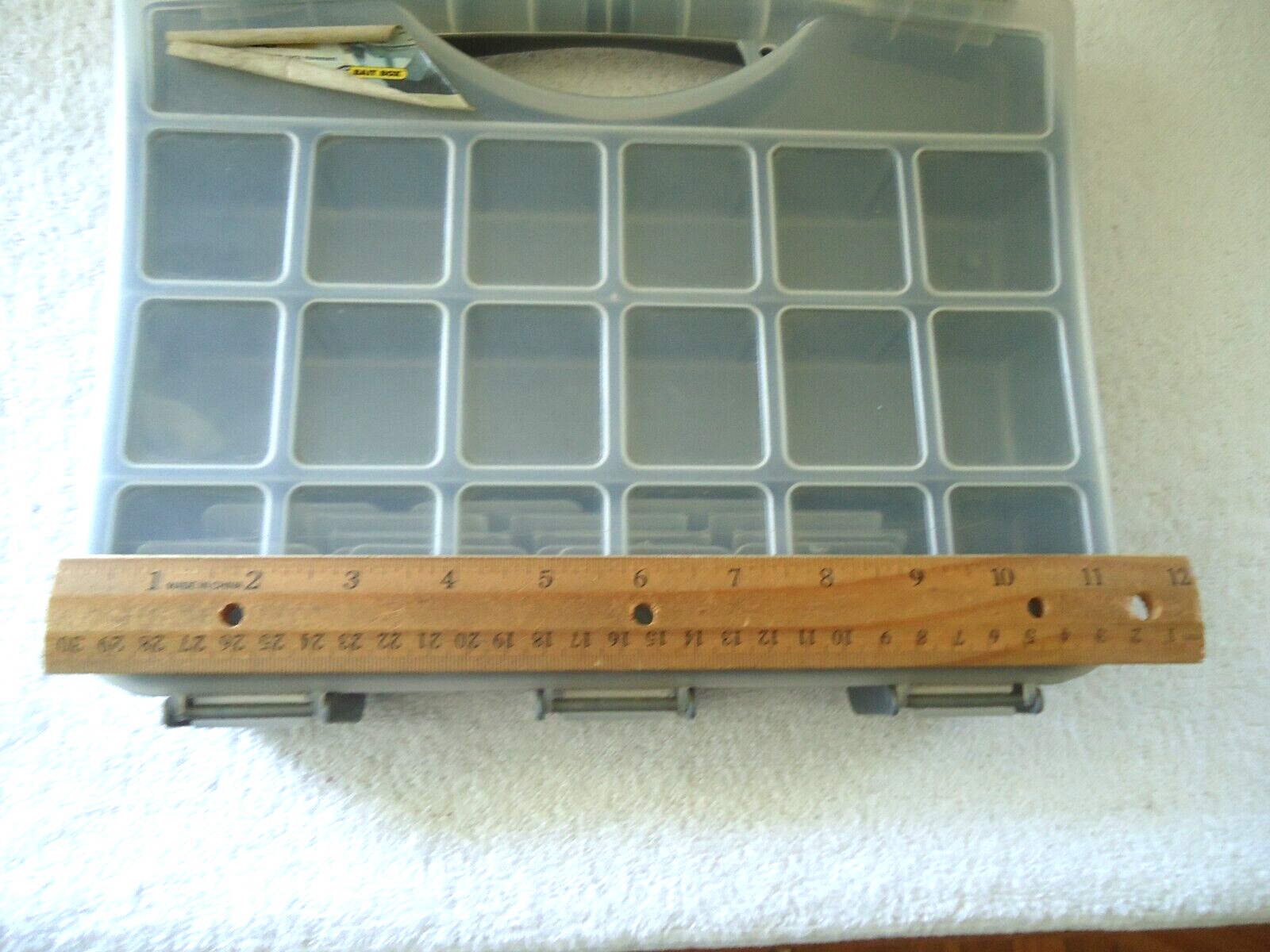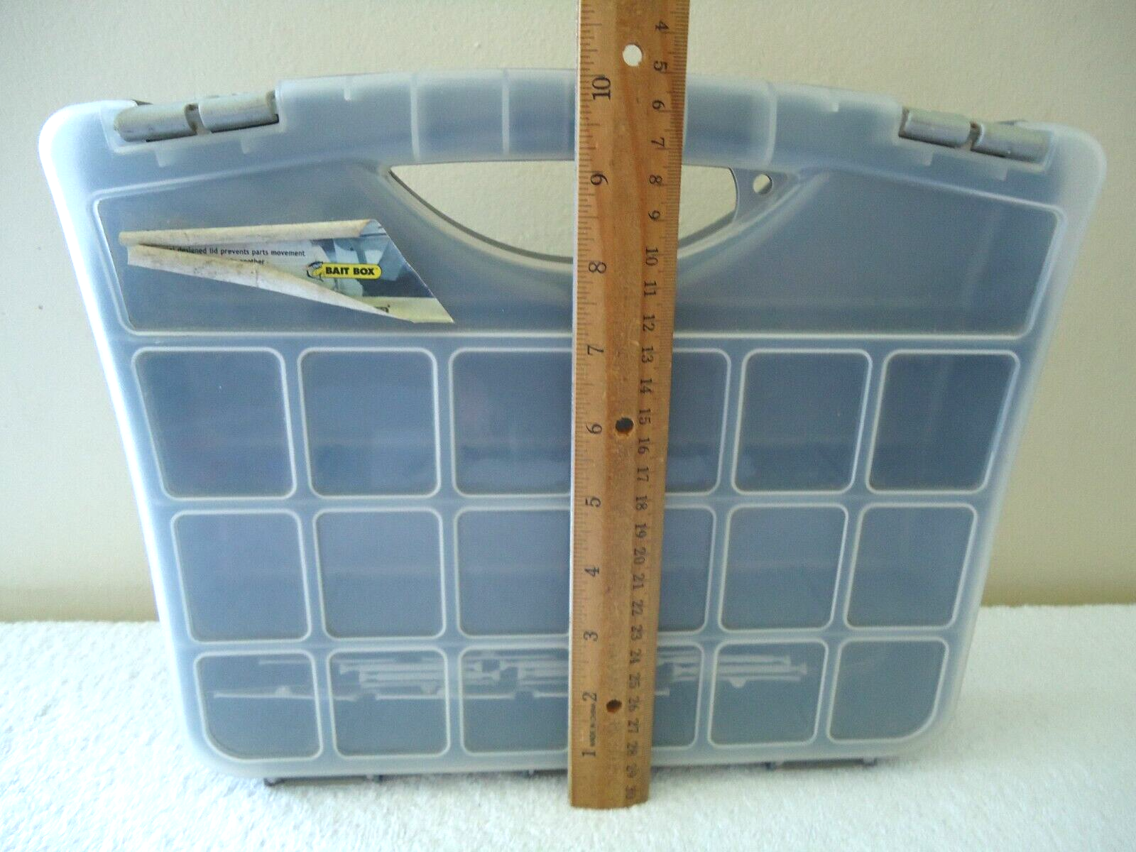 Here is a " NWT " Keter Tackle Organizer Bait Box With 15 Removable Space Dividers " Great Gift Item " As you can see in the 1 pic it does have a light scratch going down the front of it,also may have some dust,etc.on it from being in storage.If you have any concerns or questions about this item(s) please ask before bidding / purchasing because this item(s) is being SOLD AS IS.Thank You.-(FL)