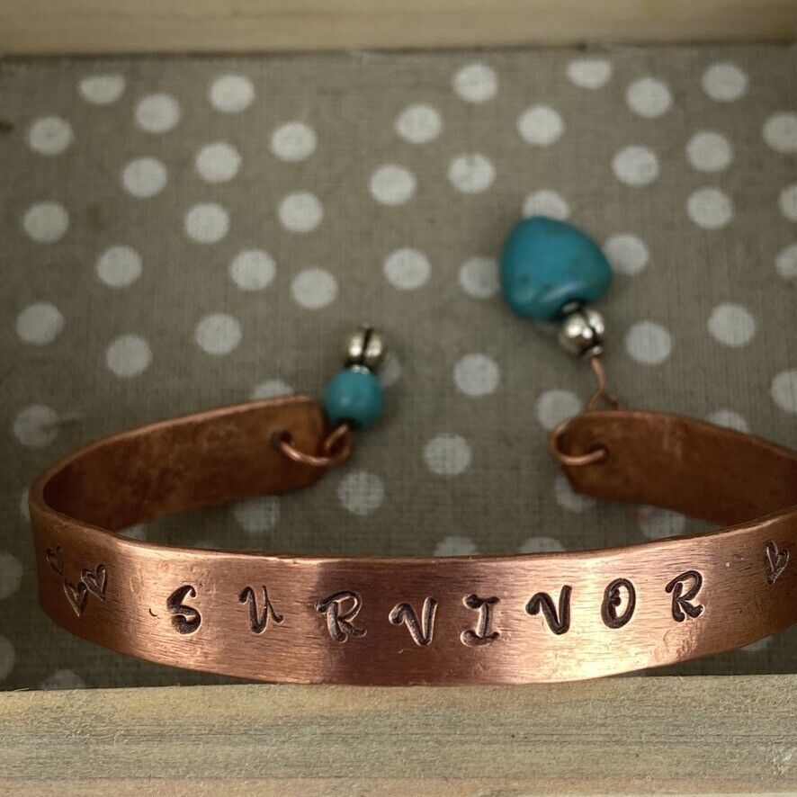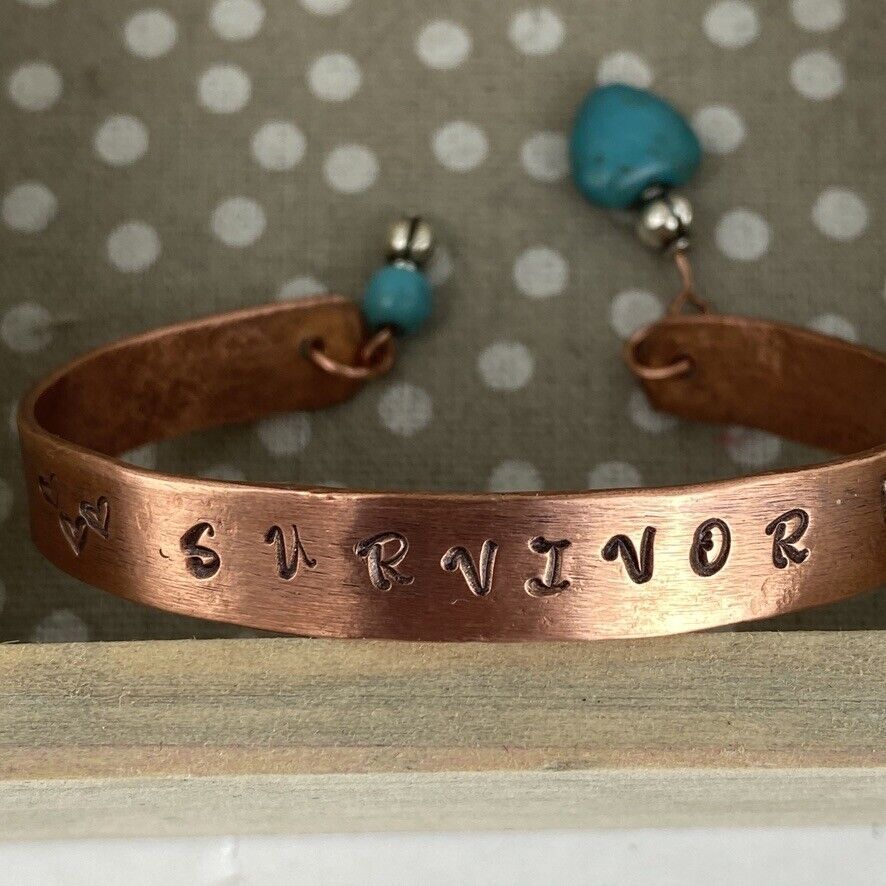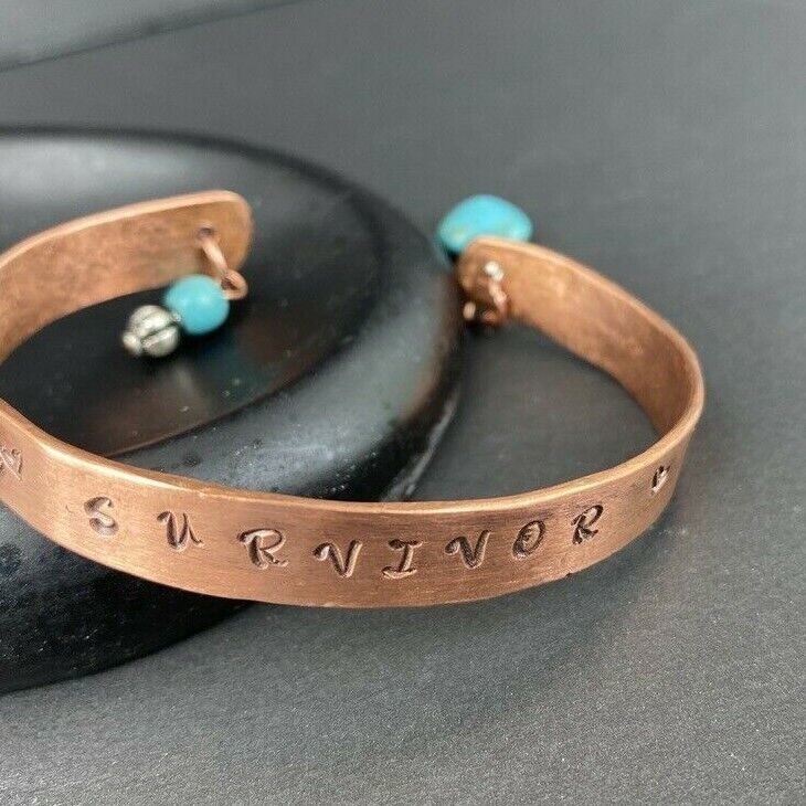 Pure Copper Survivor Bracelet Copper Boho Handmade Cuff Blue Jasper Heart