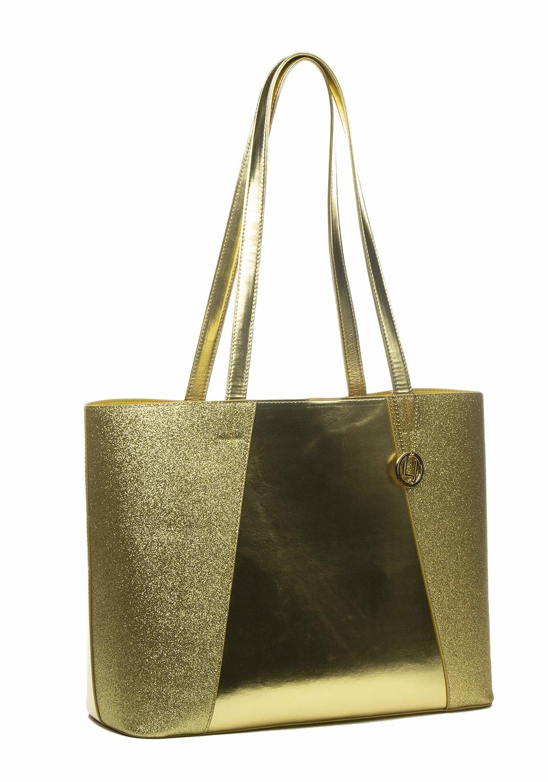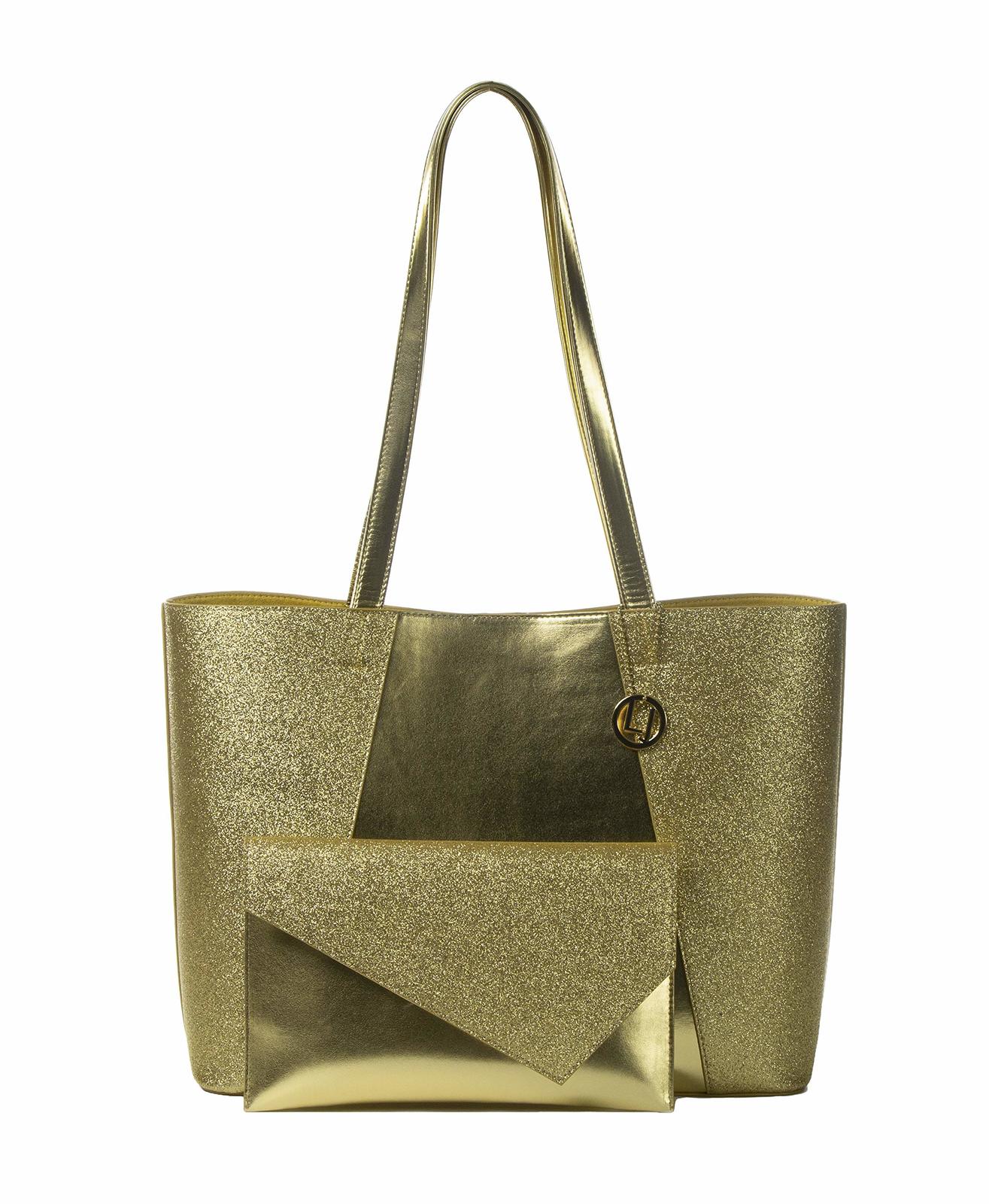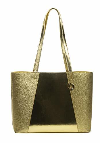 Product description: Have the bag everyones talking about! These dazzling sparkle totes make you unafraid to shine a little brighter. Chic, edgy, and on trend, and available in a classy black, gold, or silver, each bag makes a fashionable and functional piece with plenty of space for a laptop, notebooks, work essentials, everyday necessities, and more!Size: 13 x 5 x 11