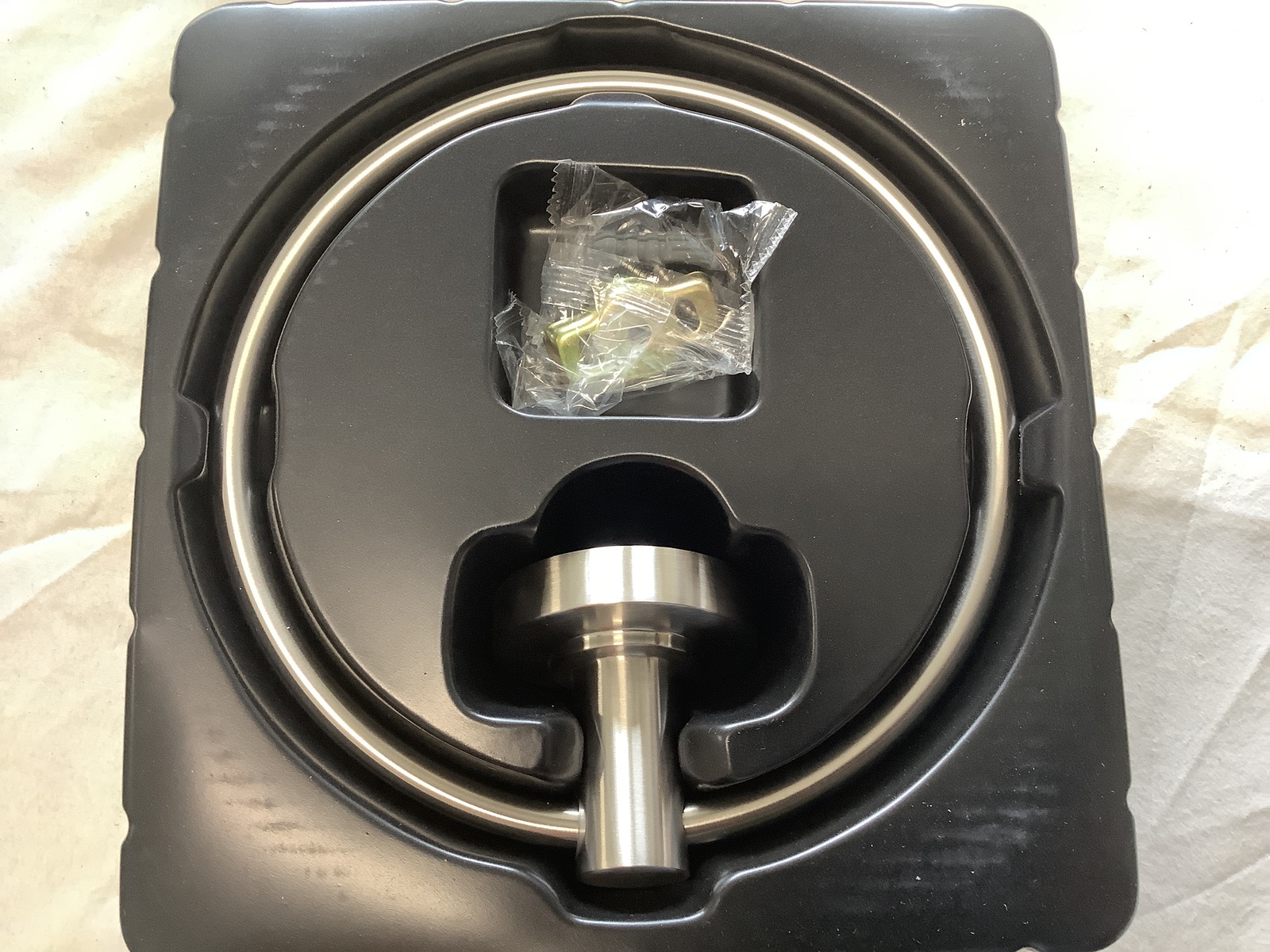 We do not accept returns, so please verify that this towel ring will suit your needs. The original box has wear, but the item is not damaged. In the rare event the item is defective upon installation or blemished in some way (unless previously stated in this description), we will discuss a refund or exchange. Please contact us immediately before filing a dispute. Contact us within 14 days if you have any issues that need addressed. As always, our goal is complete customer satisfaction.