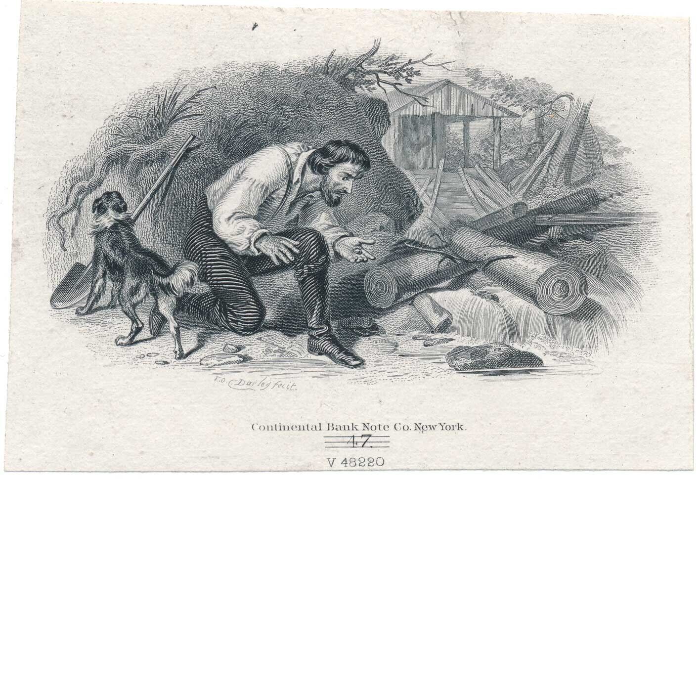 John Marshall Discovering Gold, Vignette Die Proof on india, CBNCo. 1864 F.O.C.