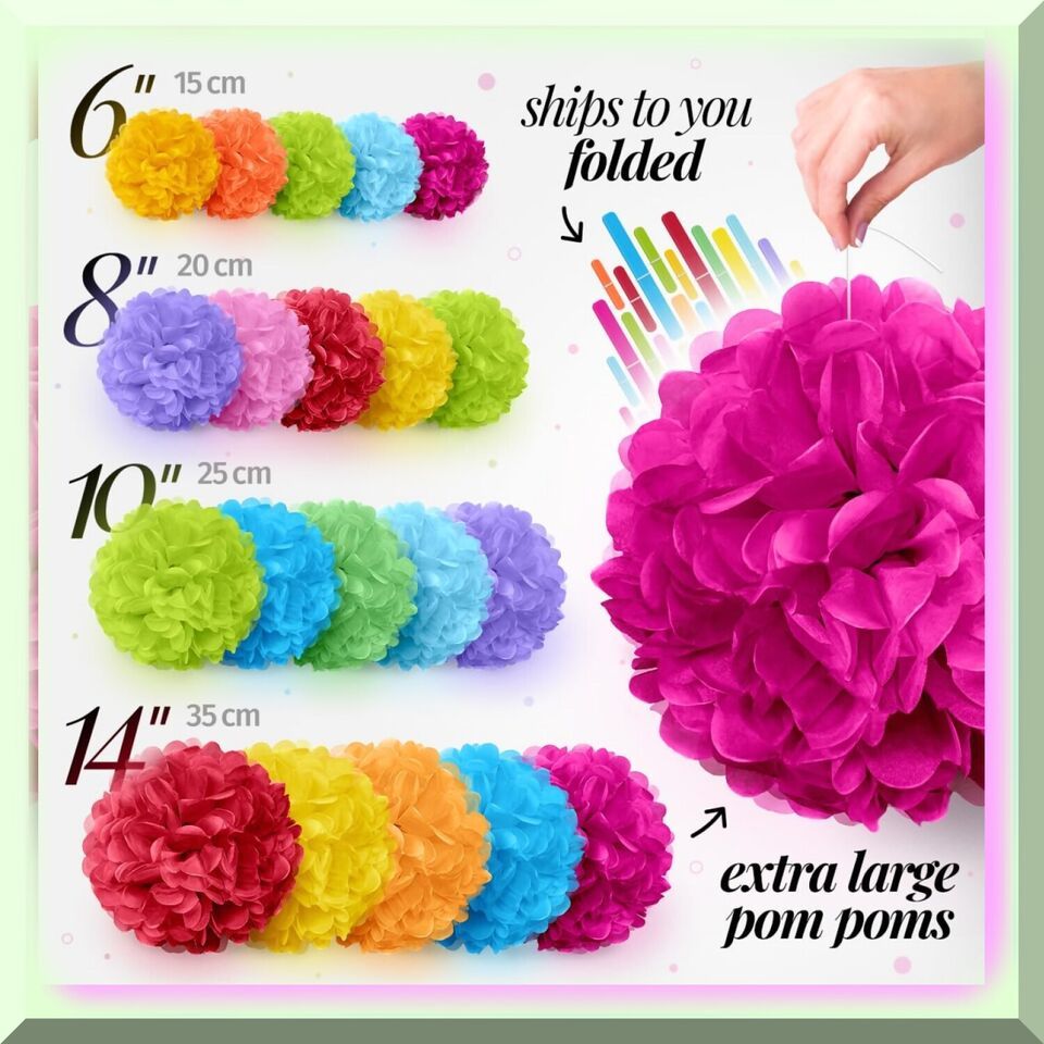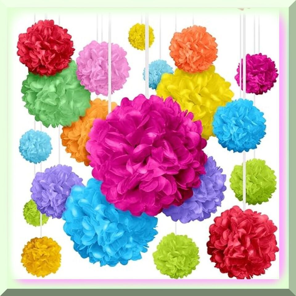 Astonishing Array of Alluring Hues - Behold the breathtaking beauty of this 20-piece set, adorned with tissue paper pom poms in four distinct sizes. Delight in the diversity of 12 captivating colors, carefully curated to ignite your imagination and infuse any occasion with a kaleidoscope of vibrancy. Immerse yourself in a world where every shade tells a story, where creativity knows no bounds. Let your artistic spirit soar as you explore the endless possibilities that this astonishing array of alluring hues presents.