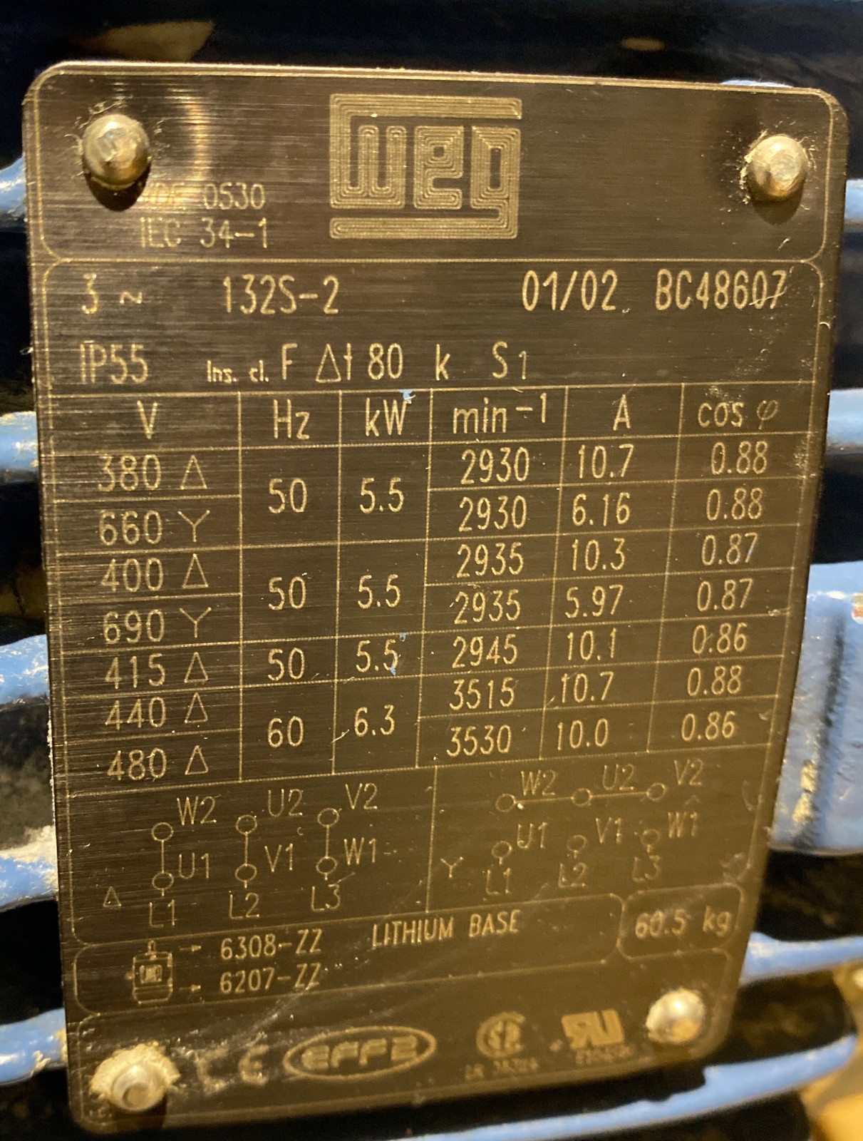 Weg 132S-2 Inverter Duty Motor 6.3kW/8.45HP and 50 similar items