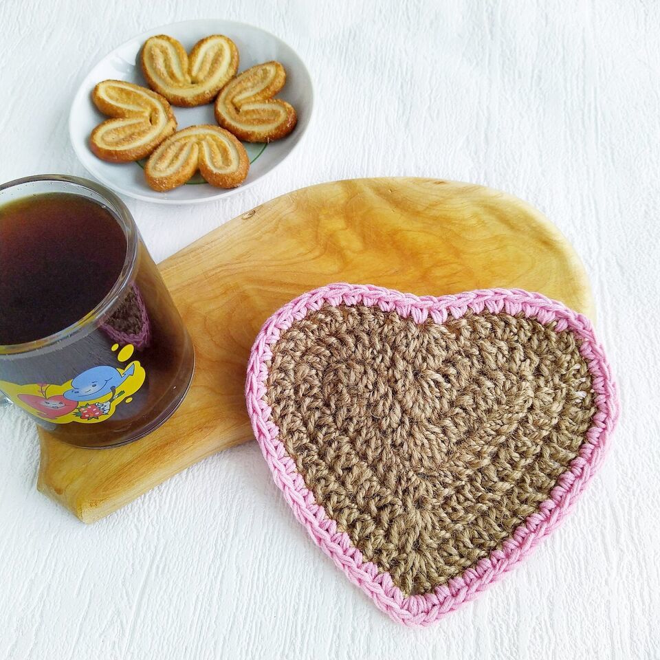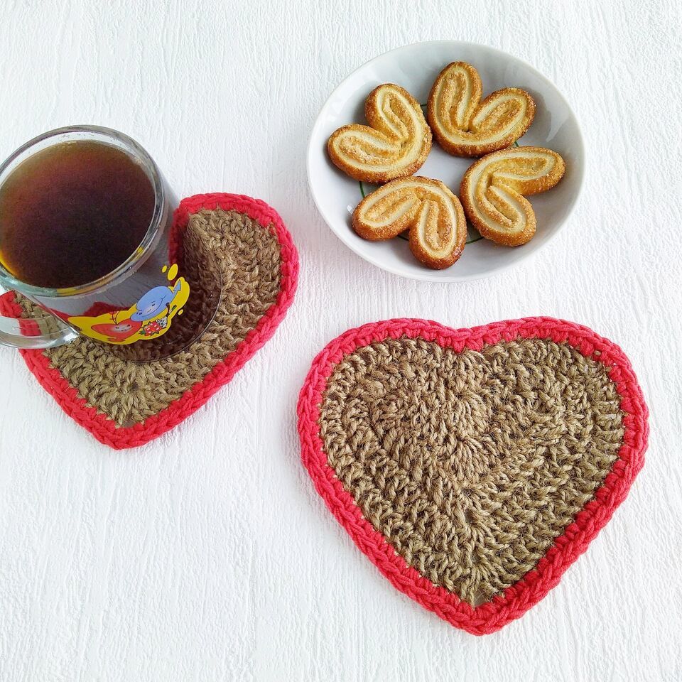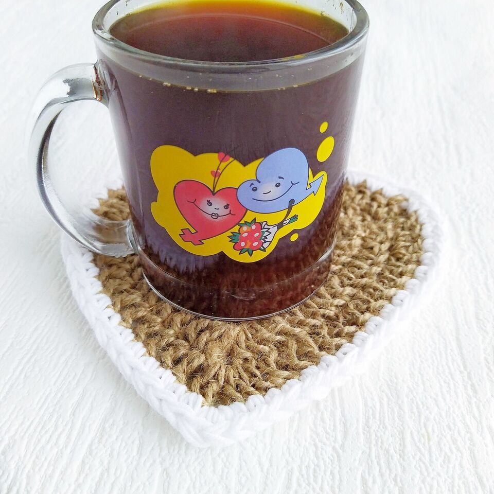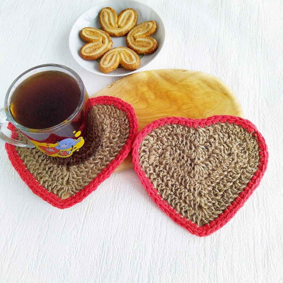 Coasters for Drinks Table set Jute Heart Handmade Coasters Valentines day Gifts