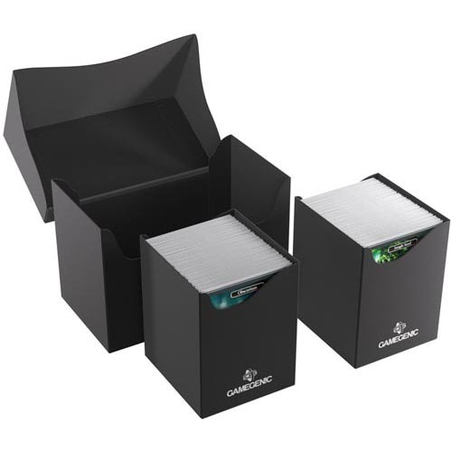 The Double Deck Holder 200+ XL is a compact, durable, and affordable storage solution. It is perfect to store two complete decks or up to 200 double-sleeved cards in Thick Inner Sleeves. The two inner deck holders are removable and can hold up to 100 double-sleeved cards each. The innovative Cobra Neck technology allows for wide opening of the lid and easy access to deck holders and cards. The Double Deck Holder 200+ XL also fits oversized cards. It comes in 5 different vibrant colors and a write-on strip on the top.