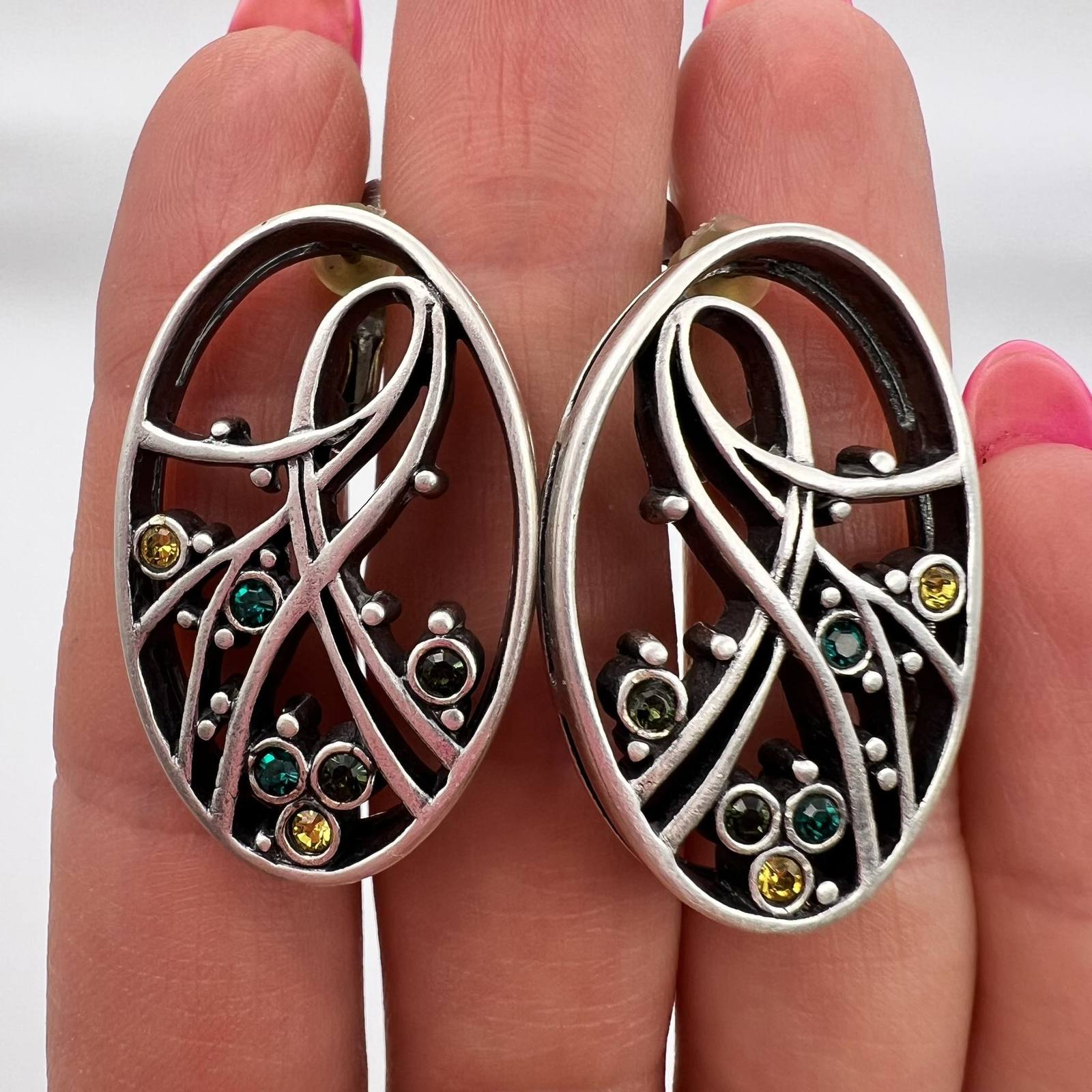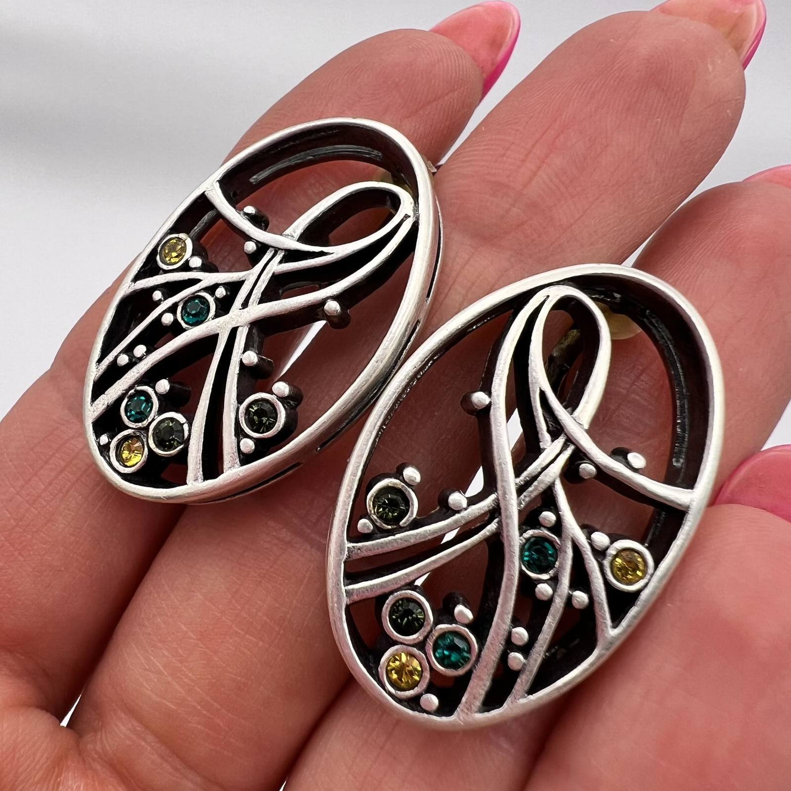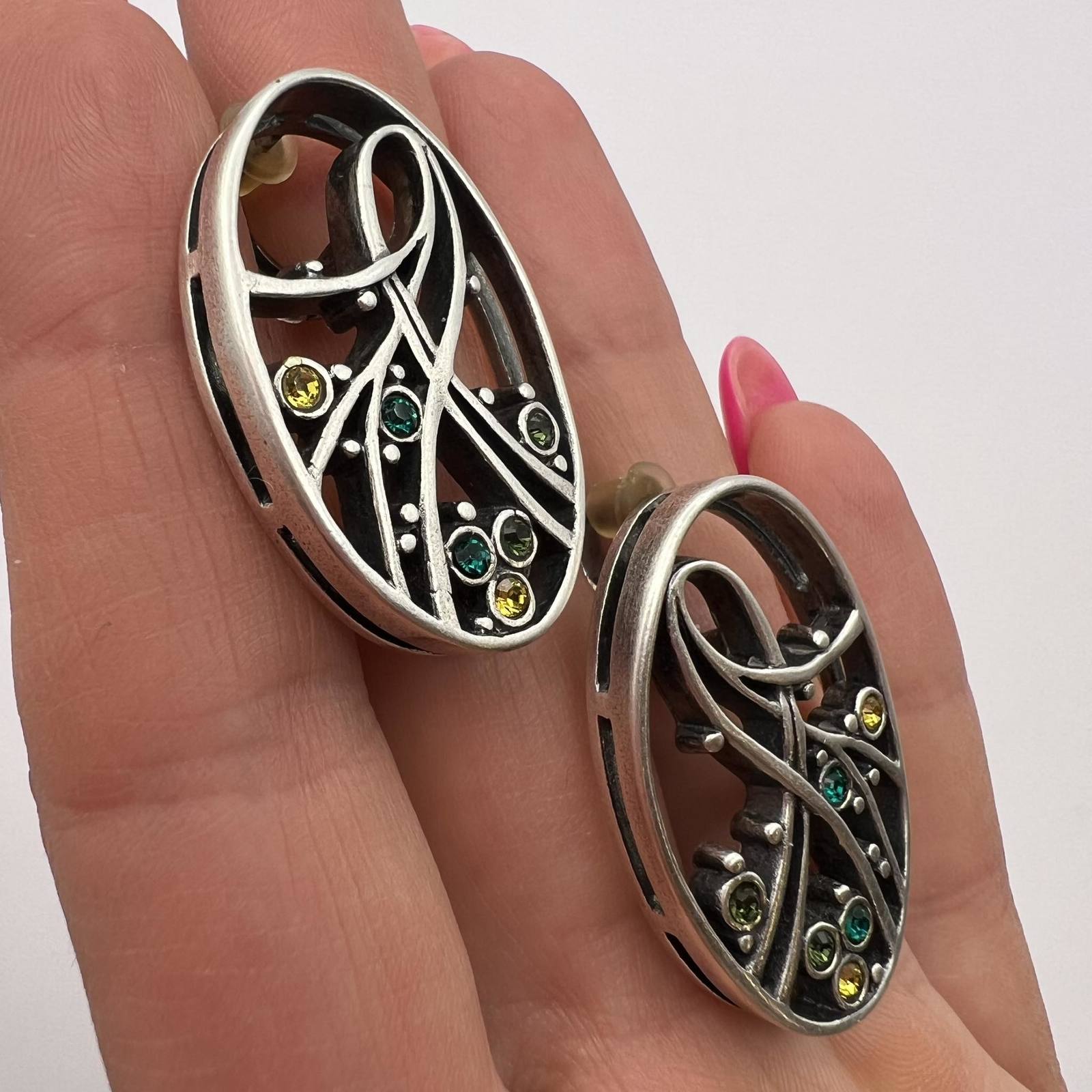 Massive Vintage Sterling Silver 925 Women's Jewelry Stud Earrings Marked 16.7 gr