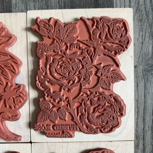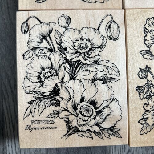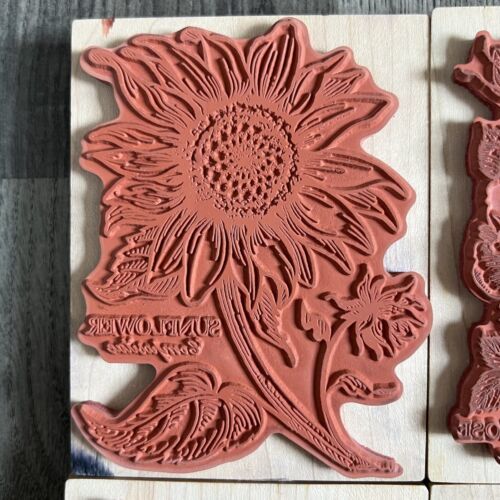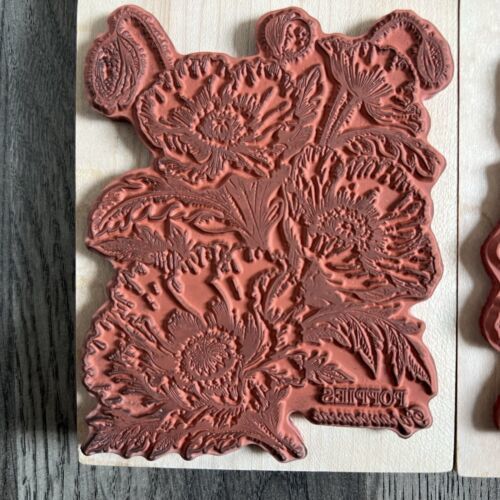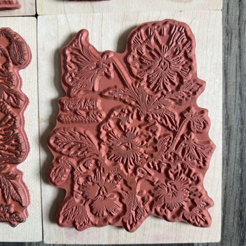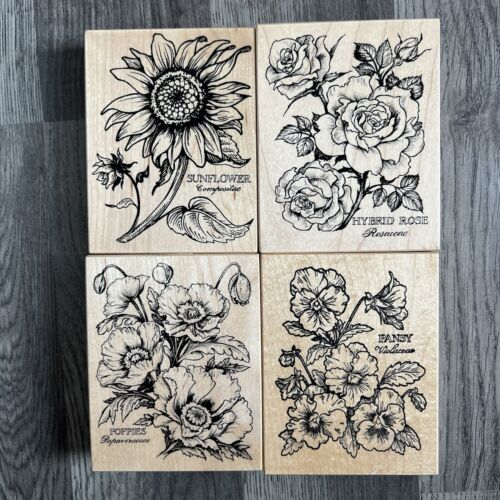 90s PSX Botantical Flower Rubber Stamp Mounted Lot Pansy, Poppy, Rose, Sunflower