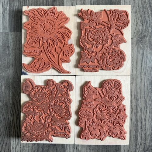 You'll receive 4 Rubber Stamps as shown in the photos. Pansies, Poppies, Hybrid Rose and Sunflower