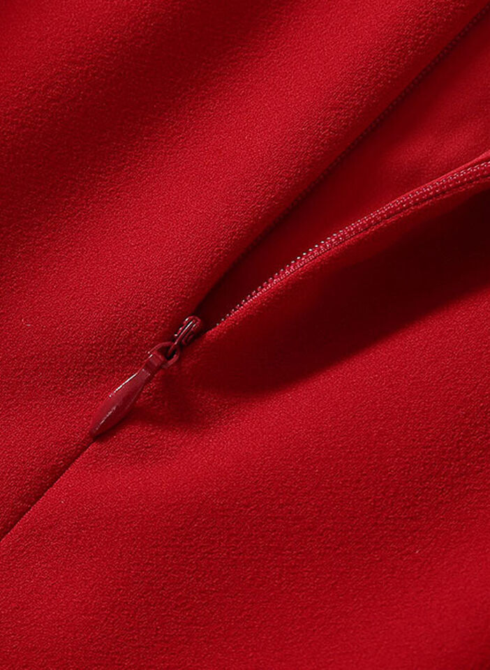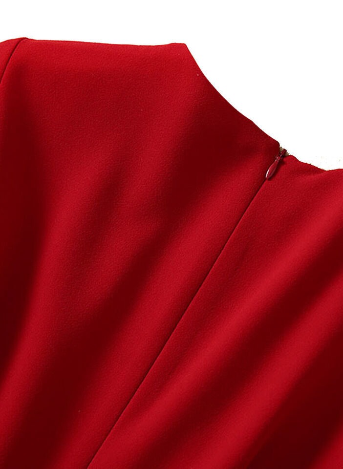 Women's Red Padded Shoulder Pleated Neckline Sheath Midi Dress Princess Kate