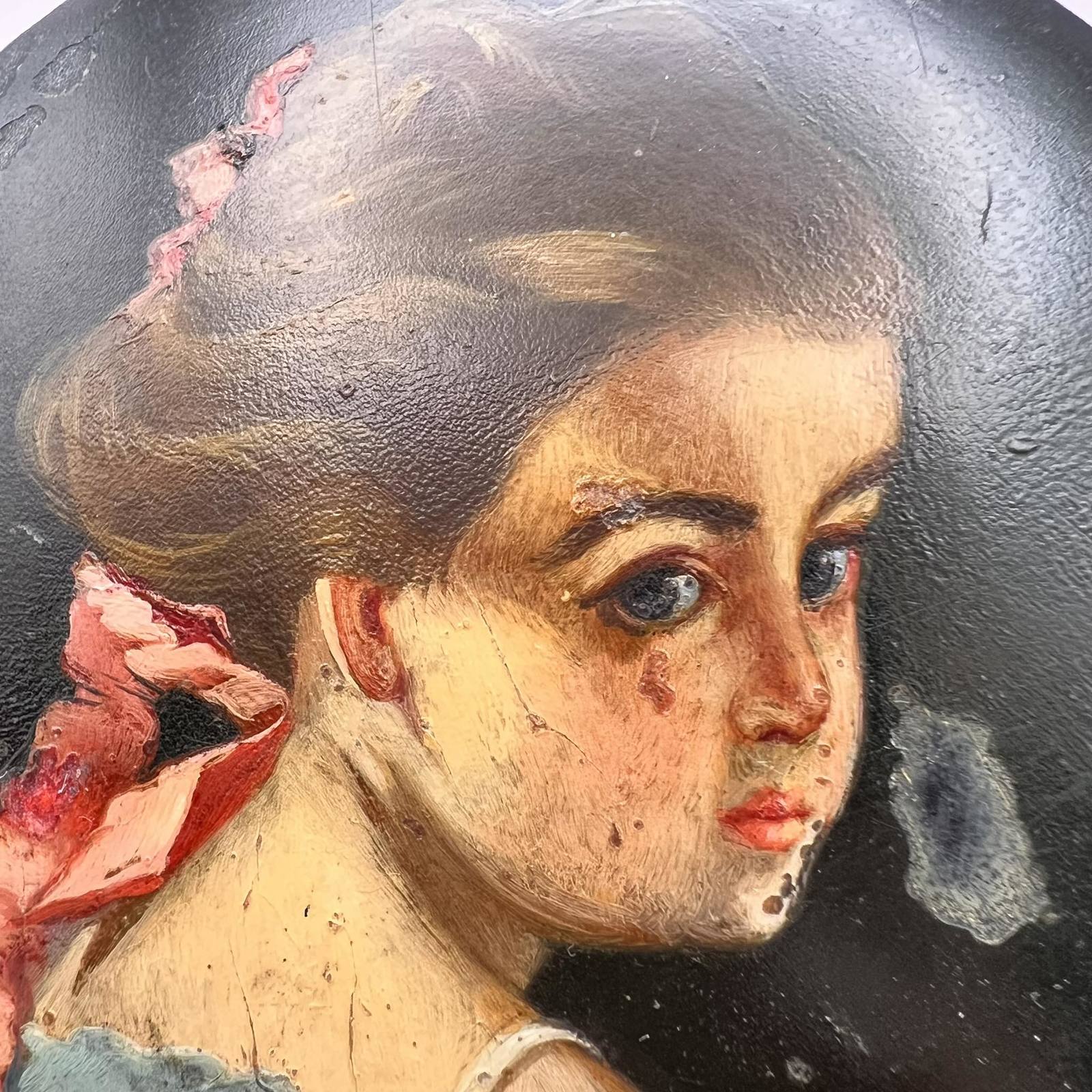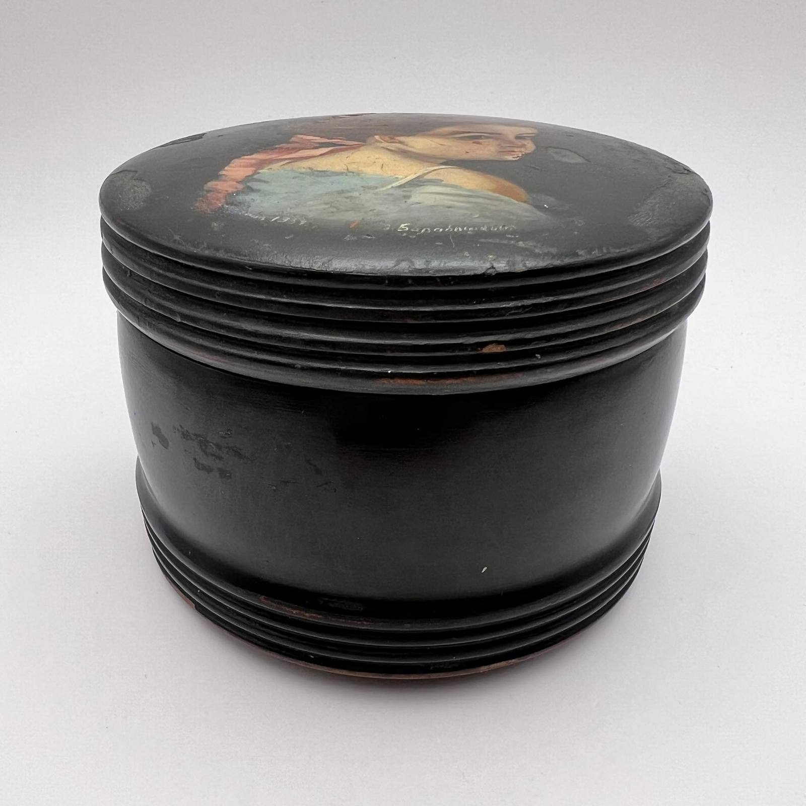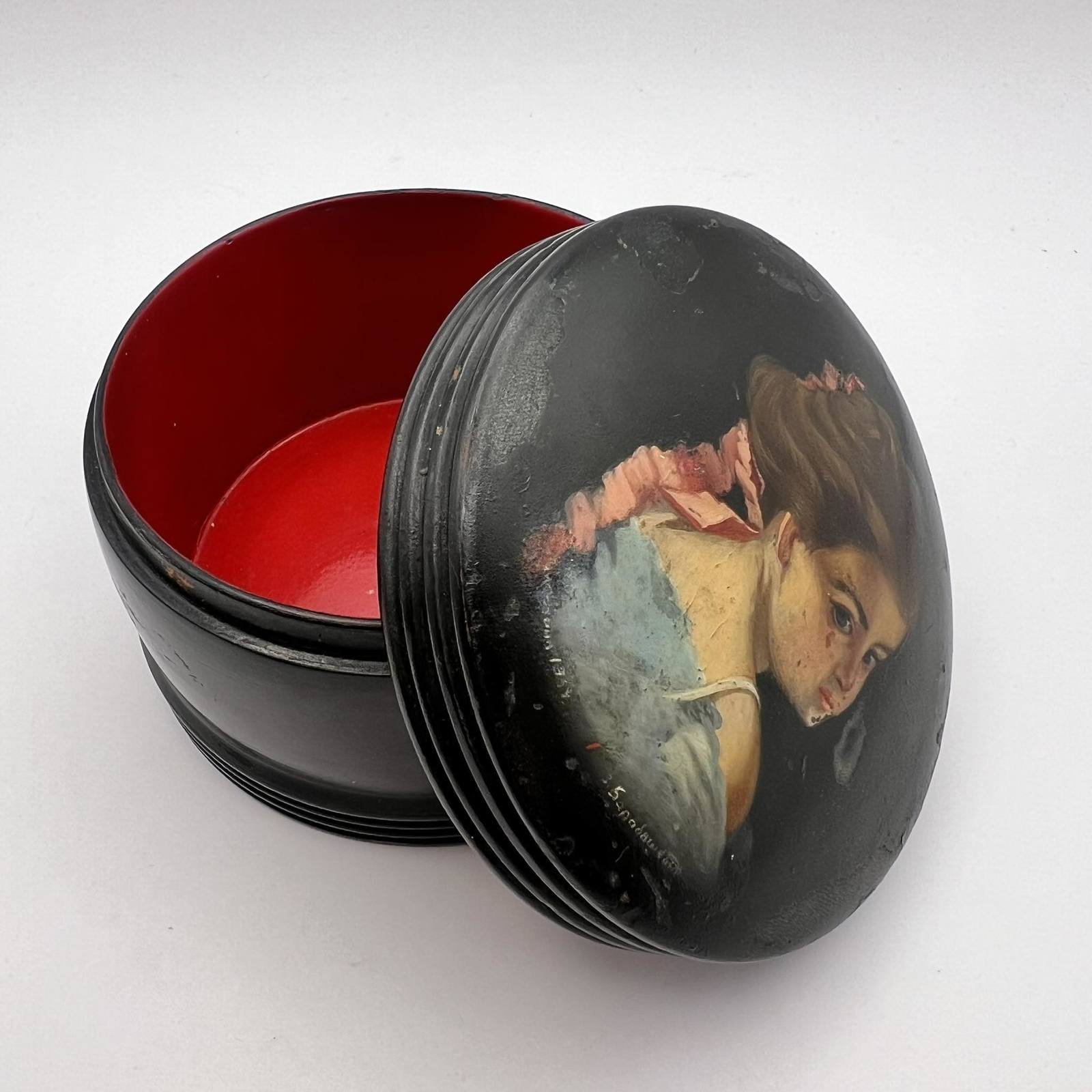 1954 Vintage USSR Hand Painted Wooden Trinket Jewelry Lacquer Box Young Lady Marked