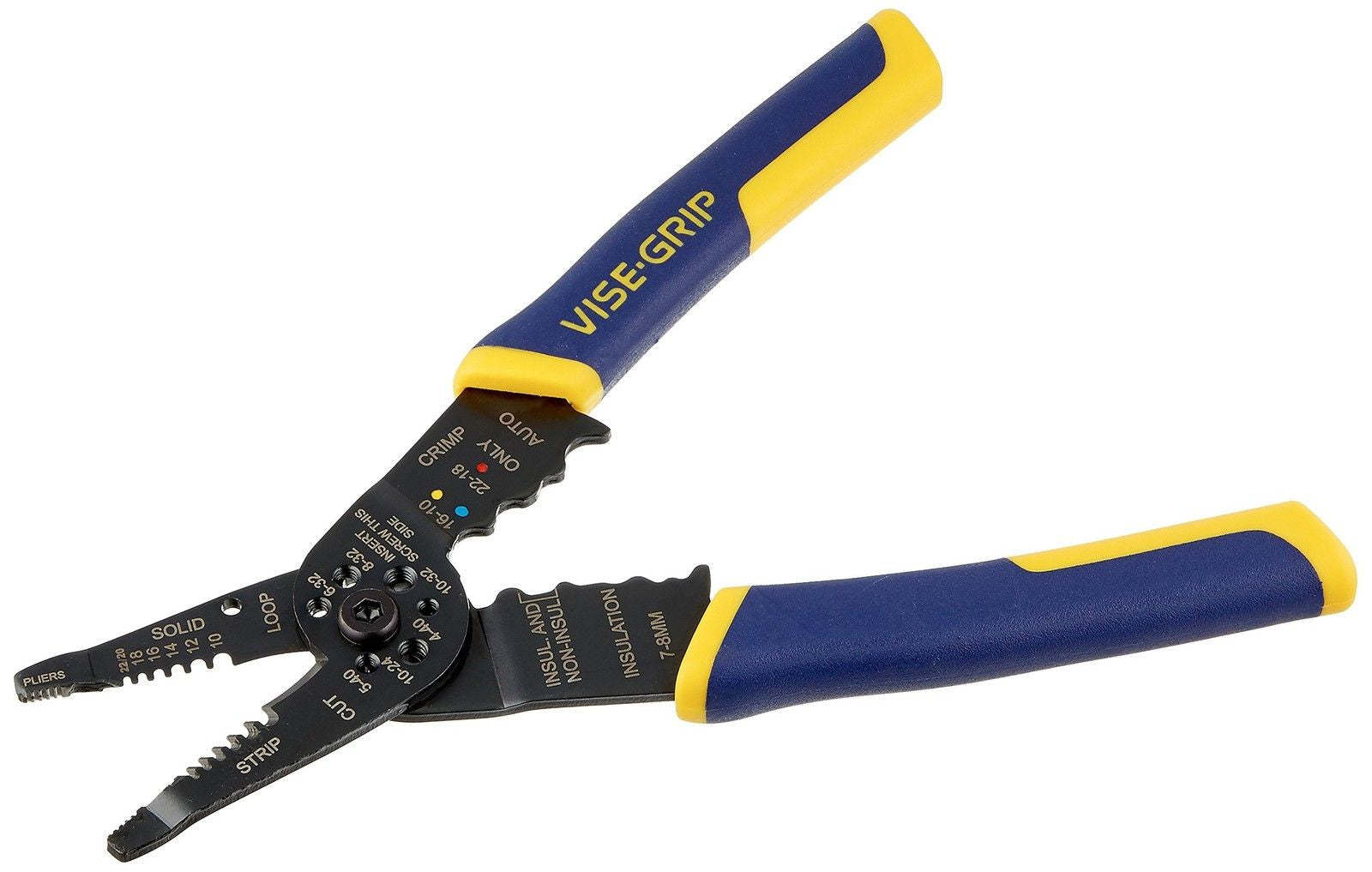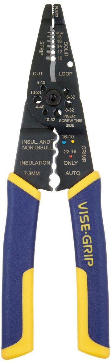 Size:8-inch The IRWIN VISE-GRIP Multi-Tool Wire Stripper/Crimper/Cutter is a must-have for anyone performing electrical work. With an induction hardened cutting edge, this single tool combines a wire stripper, wire cutter, and crimper into one tool that strips and cuts 10-22 AWG, crimps insulated and non-insulated terminals, and cuts bolts to size with a perfect lead thread. This handy tool features a pliers nose for pulling and looping wire and ProTouch grips for maximum comfort and reduced hand fatigue to keep working all day. Meets or exceeds all ANSI standards