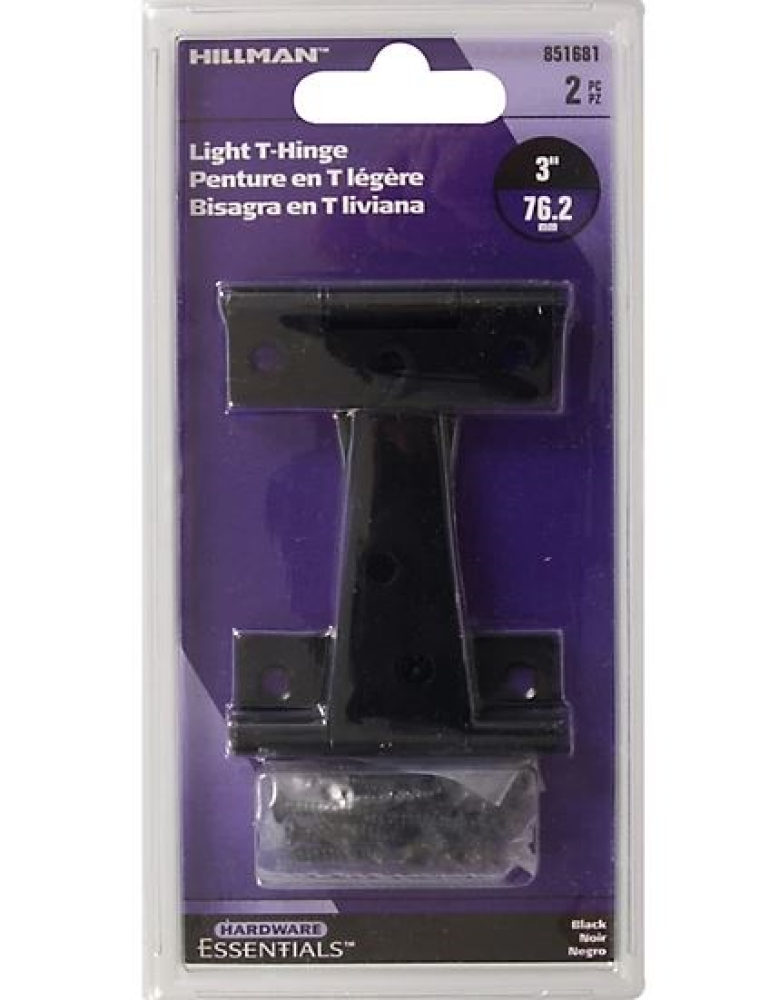 Hillman Hardware Essentials 851681 Steel Light T-Hinges Black 3-Inch, 2 Pack