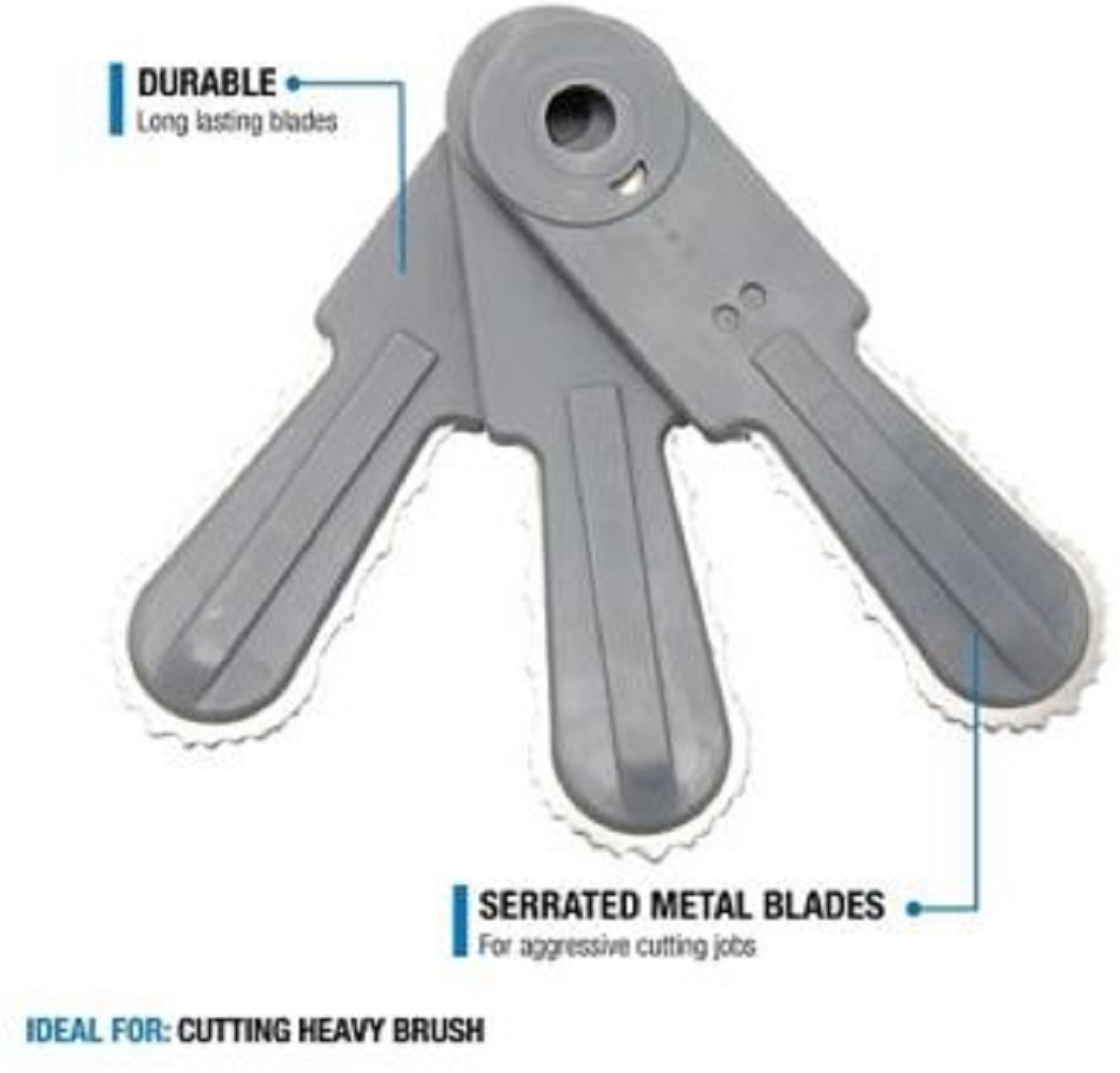 This sale transaction is for Shakespeare 17258 Brush Cutter Replacement Trimmer Blades Plastic Gray Included exactly what is pictured.