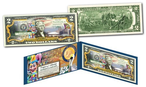 See the U.S.A. as never before with the All-New U.S. $2 Statehood Bills Currency Collection, a spectacular presentation. This all-new collection of Statehood $2 Bills honors each of our 50 states, and comes packaged in a premium display folio that shows both your States bill and the highly customized official States Certificate of Authenticity. You'll enjoy glimpses of each state's most fascinating sights, symbols, and stunning natural beauty; adding to the effect, the custom artwork also includes imagery inspired by the collector-favorite State Quarters and U.S. Parks. Discover breathtaking American beauties with a rare currency collection that also honors our national parks with brilliant color. While $2 Bills are genuine U.S. legal tender, they make up fewer than 1% of all currency produced today, and these rarely-seen bills are coveted collector favorites. The reverse of each statehood bill features the famous depiction of the signing of the Declaration of Independence. Your bills arrive in crisp Uncirculated Condition. Celebrate these magnificent works of art of America's history.